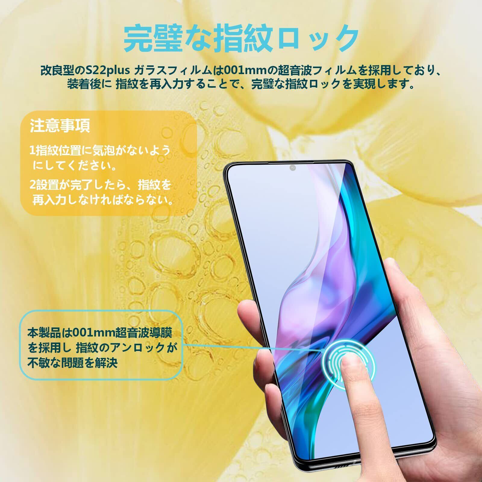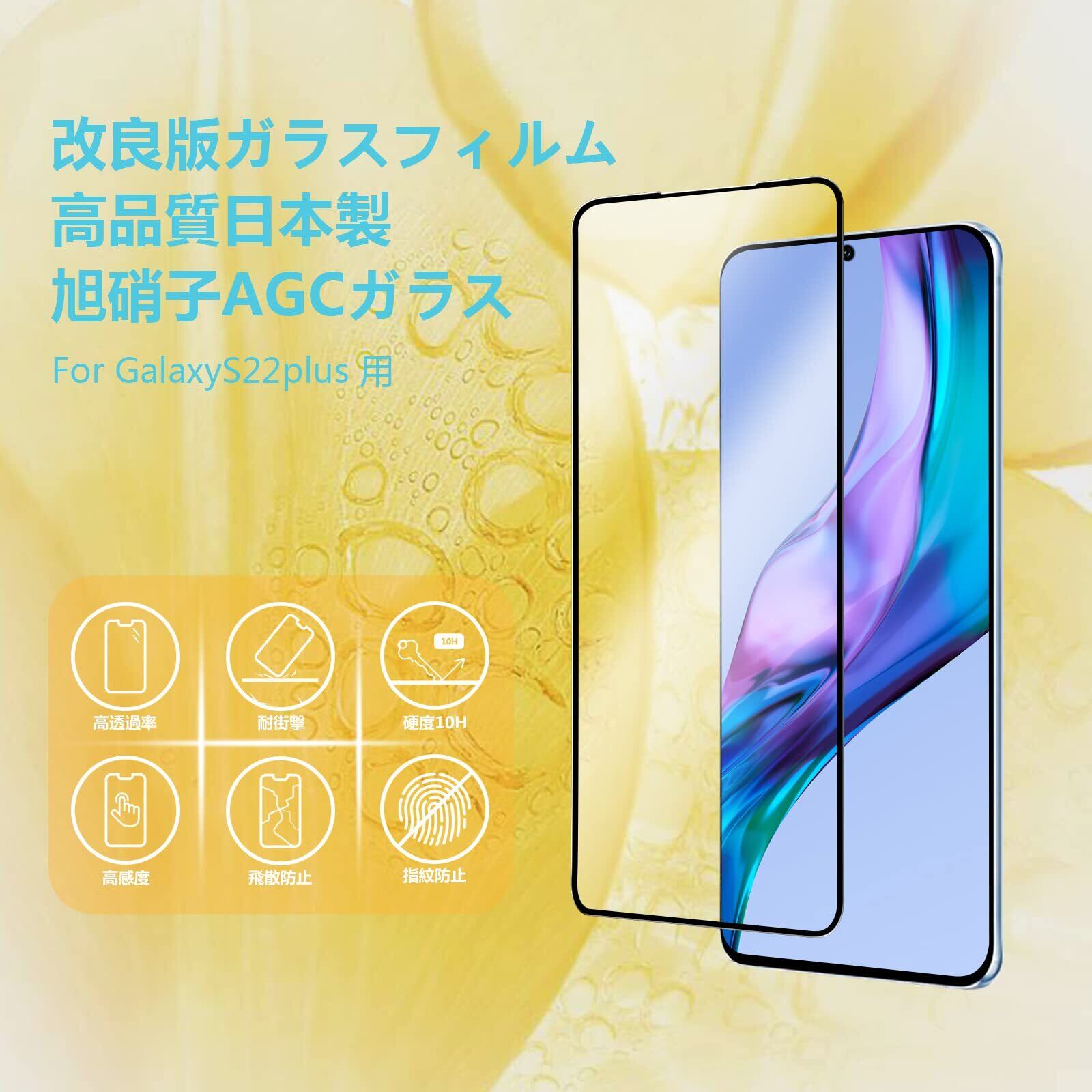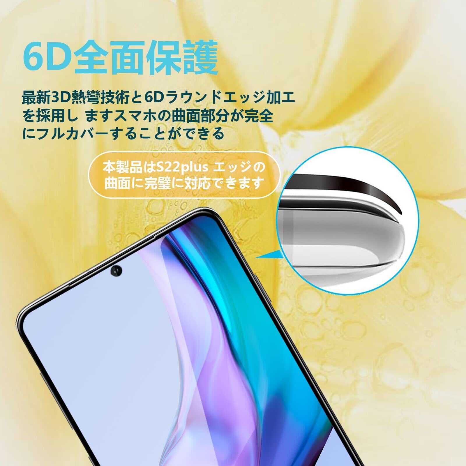 GalaxyS22プラス ガラスフィルム S22Plus フィルム ギャラクシーS22Plus 保護フィルム S22プラス フィルム S22ぷらす S22プラス ガラス ふぃるむ S22Plus 画面 液晶保護 シート シール 【指紋認証対応】 湾曲まで覆える/貼り付け簡単/高透過率/干渉しない/浮きなし/ヘラ付き【2枚セット】【ブラック】
