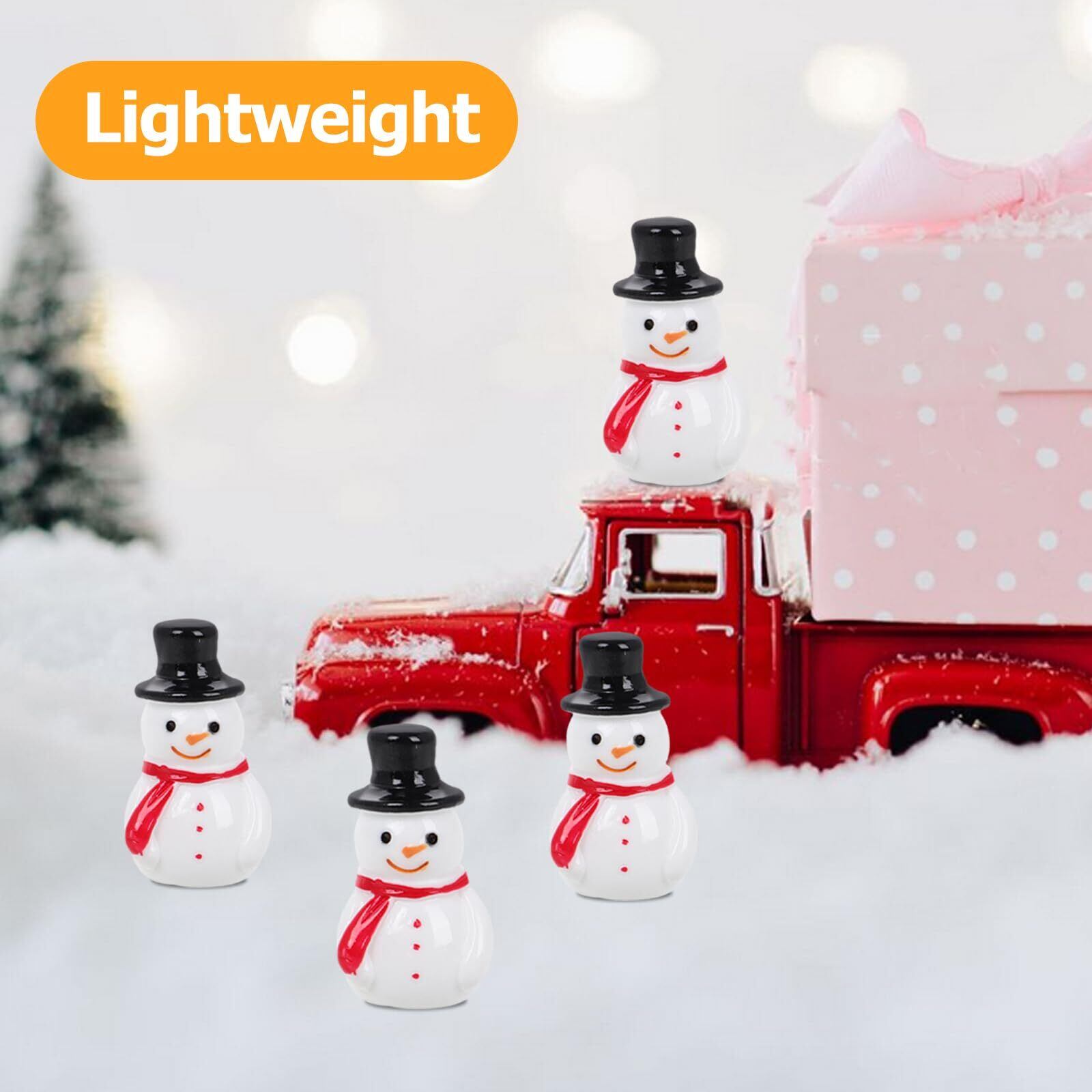 【クリスマスミニチュア】これは樹脂製のミニチュア雪だるまで、かわいいクリスマス要素の形でデザインされており、明るい色が付いています。