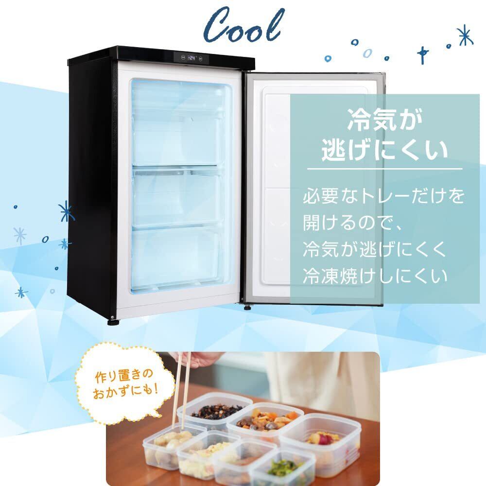 必要なトレーだけを開けるので冷気が逃げにくく冷凍焼けしにくい。インテリアに合わせやすいシンプルデザイン。