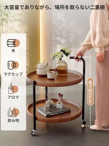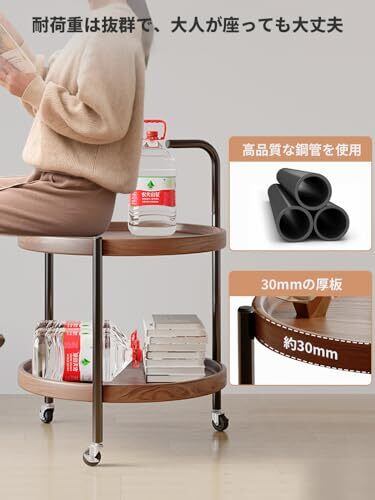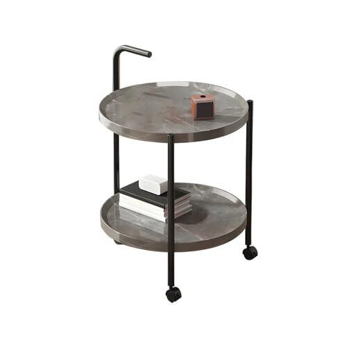 Aikenn サイドテーブル 丸型 2段式 キャスター付き コーヒーテーブル ナイトテーブル ソファテーブル ベッドサイドテーブル おしゃれ リビングルーム 寝室 大容量表面 まる 木目 防水 家庭用 (グレー)