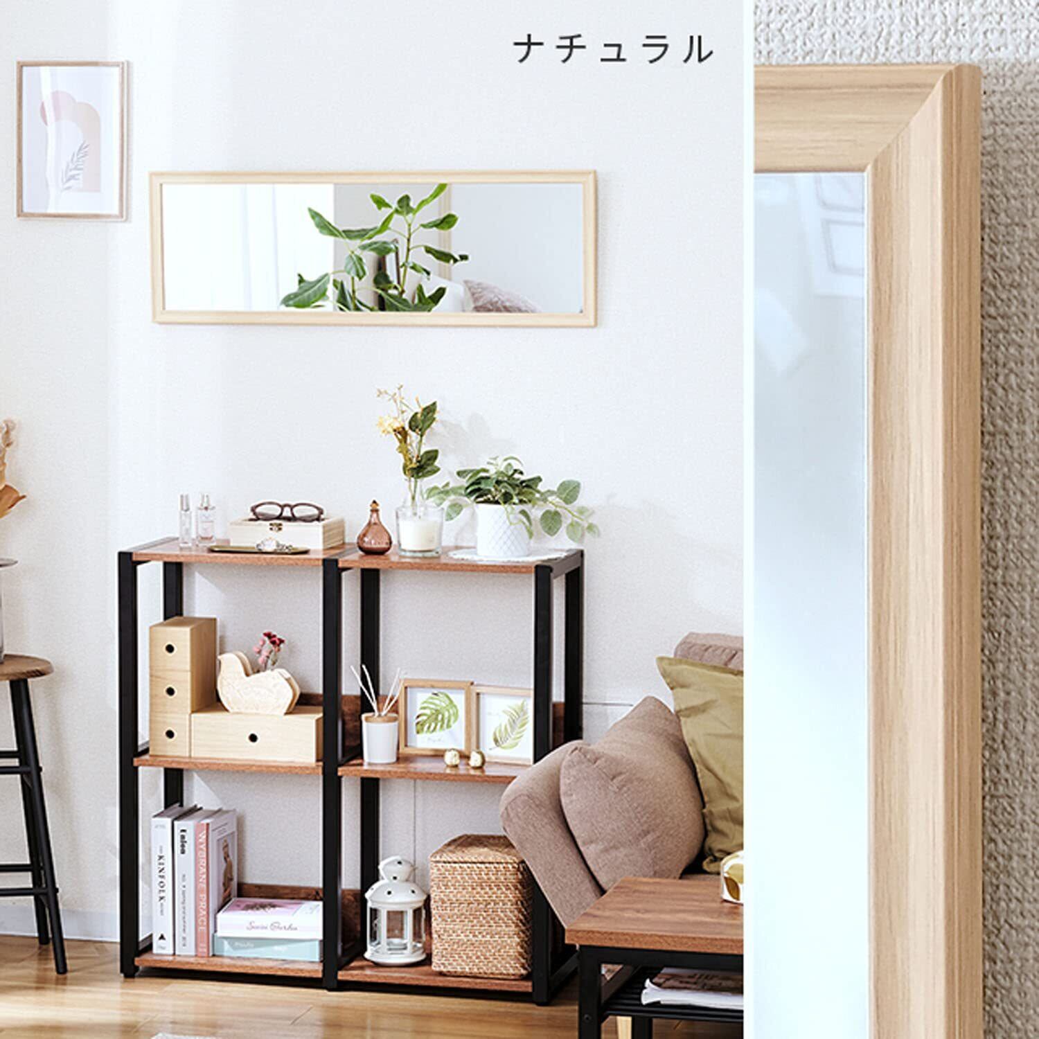 ドウシシャ ウォールミラー 縦でも横でも使える壁掛けミラー 90cm×30cm 飛散防止加工 軽量 姿見鏡 北欧 おしゃれ かわいい 木製フレーム 取付金具 玄関 洗面所 化粧 アンティーク 立て掛けるだけでもOK ナチュラル IMW9030NA | BASE SHOP