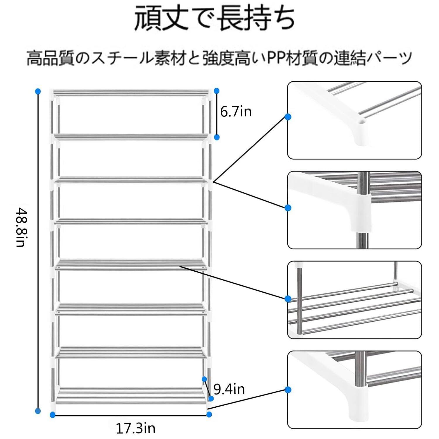 【組立簡単】工具不要の簡単組み立て式で、分解もクラクラ。スチールポールを穴に差し込むだけで、一人でも、簡単にできます 。靴収納ラック 3段(約):幅44*奥行25*高さ38CM、4段(約):幅44*奥行25*高さ56CM、8段(約):幅44*奥行25*高さ130CM