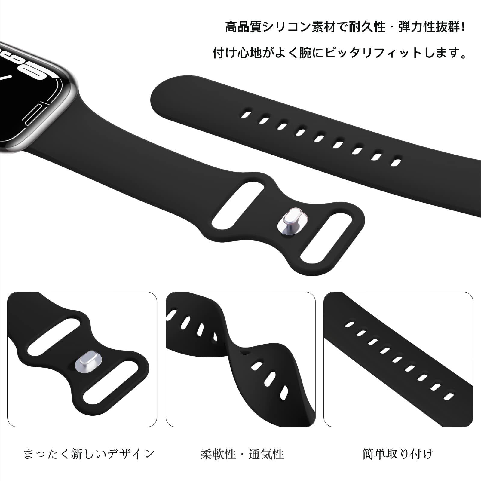 THWALK コンパチブル Apple Watch バンド ベルト 柔らかいシリコン素材のスポーツバンド 防水性 通気性 耐久性 柔軟 運動 おしゃれ 40mm 41mm 42mm 44mm 45mm 46mm 49mm S/M M/L アップルウォッチ Ultra 2/Ultra SE Series 10/9/8/7/6/5/4 に対応 (ブラック, 40mm/41mm/42mm S/M) | BASE SHOP