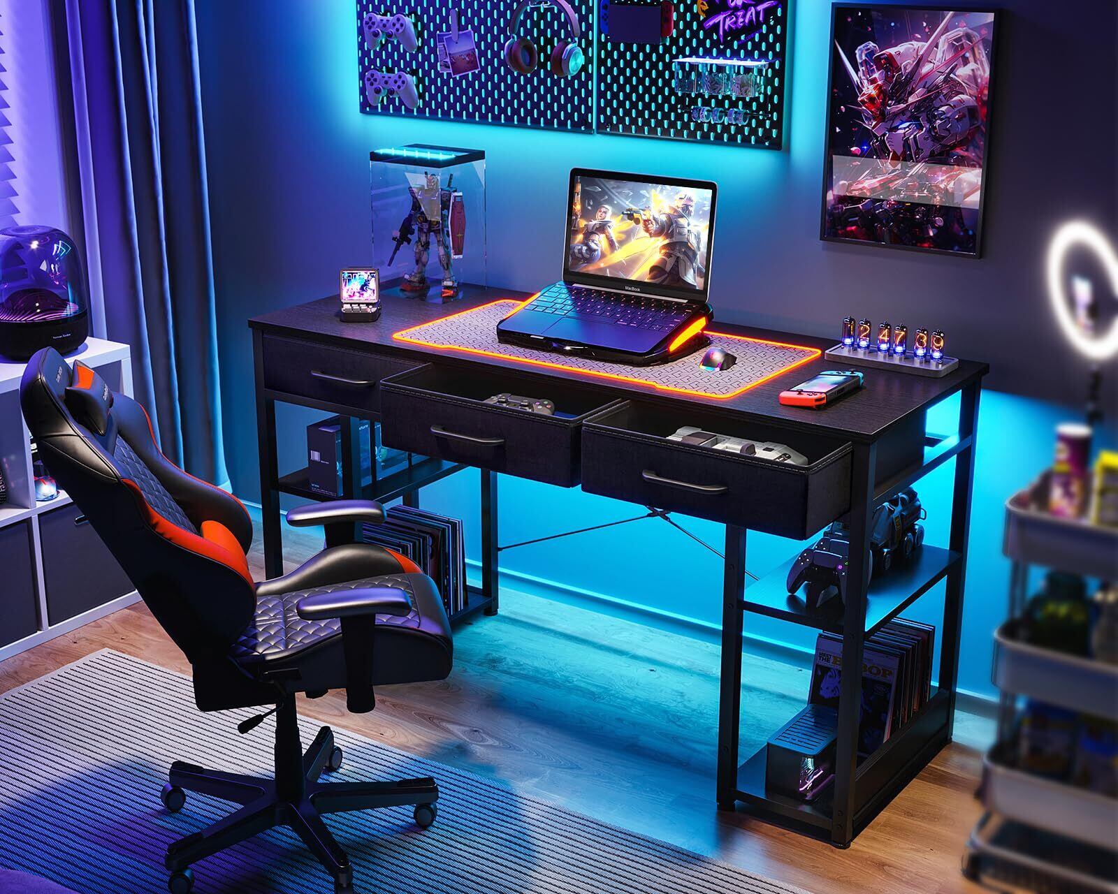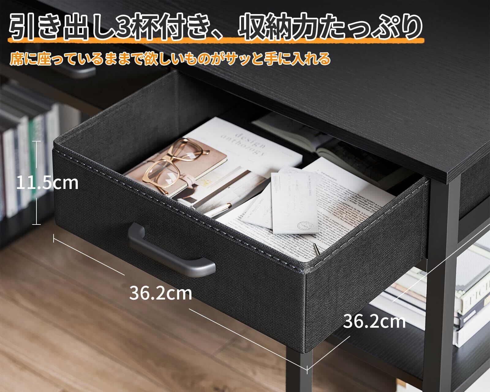 ODK 机 pcデスク パソコンデスク 幅120cm ゲーミングデスク 引き出し3杯付き ラック付きデスク 桌子 computer desk 勉強机 ワークデスク 电脑桌 スリムデスク おしゃれ テレワーク用 省スペース 黒い