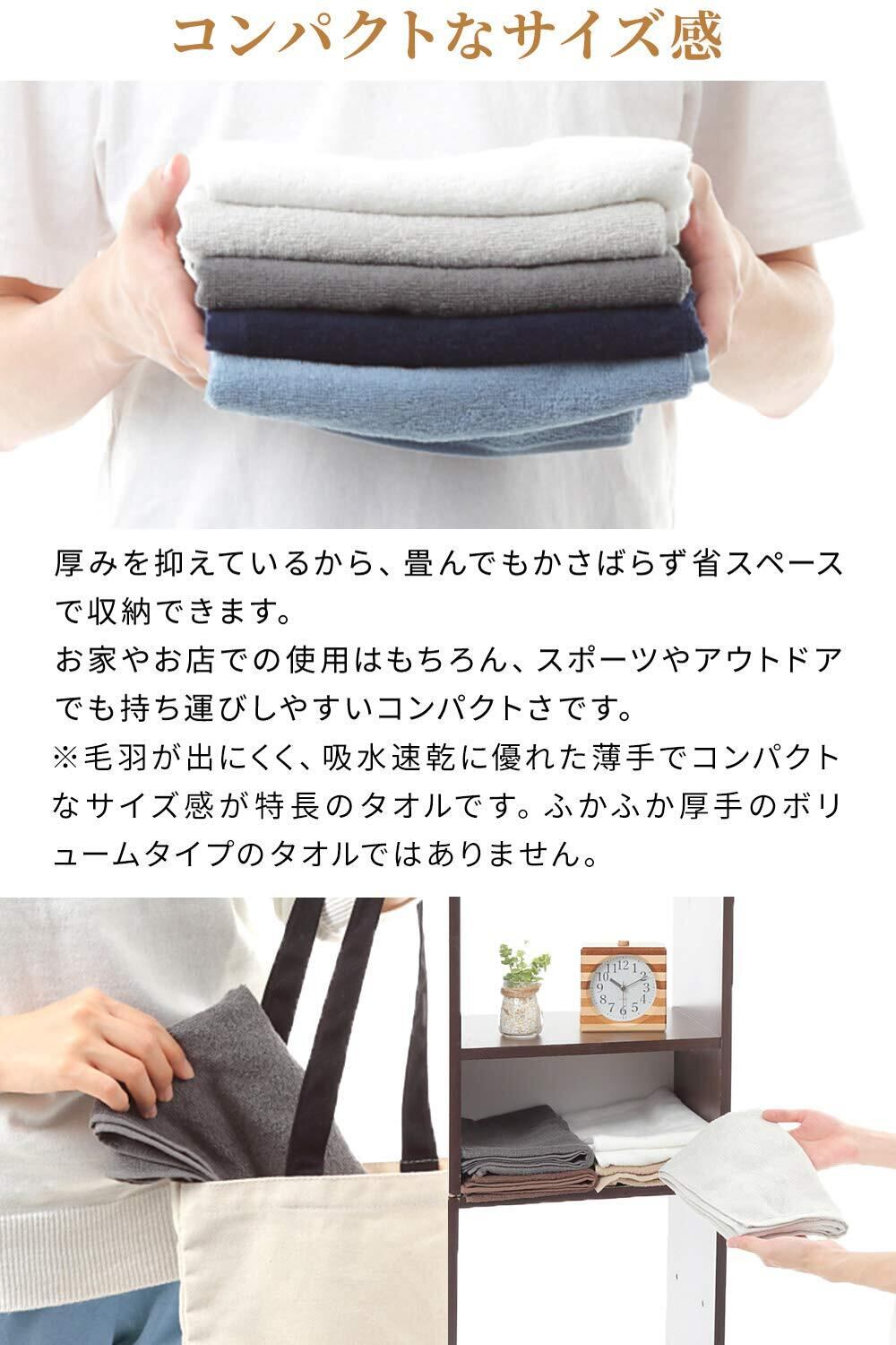 【コンパクトなサイズ感】薄手で厚みを抑えたバランスの良いタオルなので、使い勝手が良く、畳んでもかさばらず省スペースで収納できます。お家やお店での使用はもちろん、スポーツやアウトドアでも持ち運びしやすいコンパクトさです。