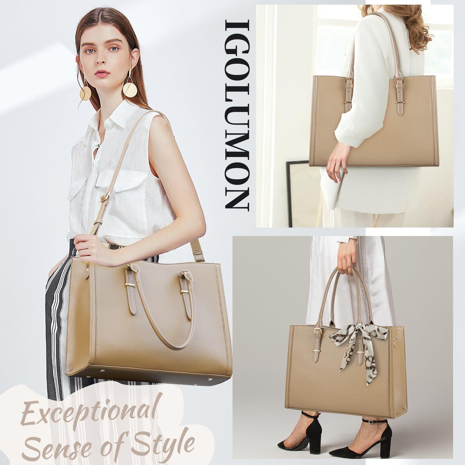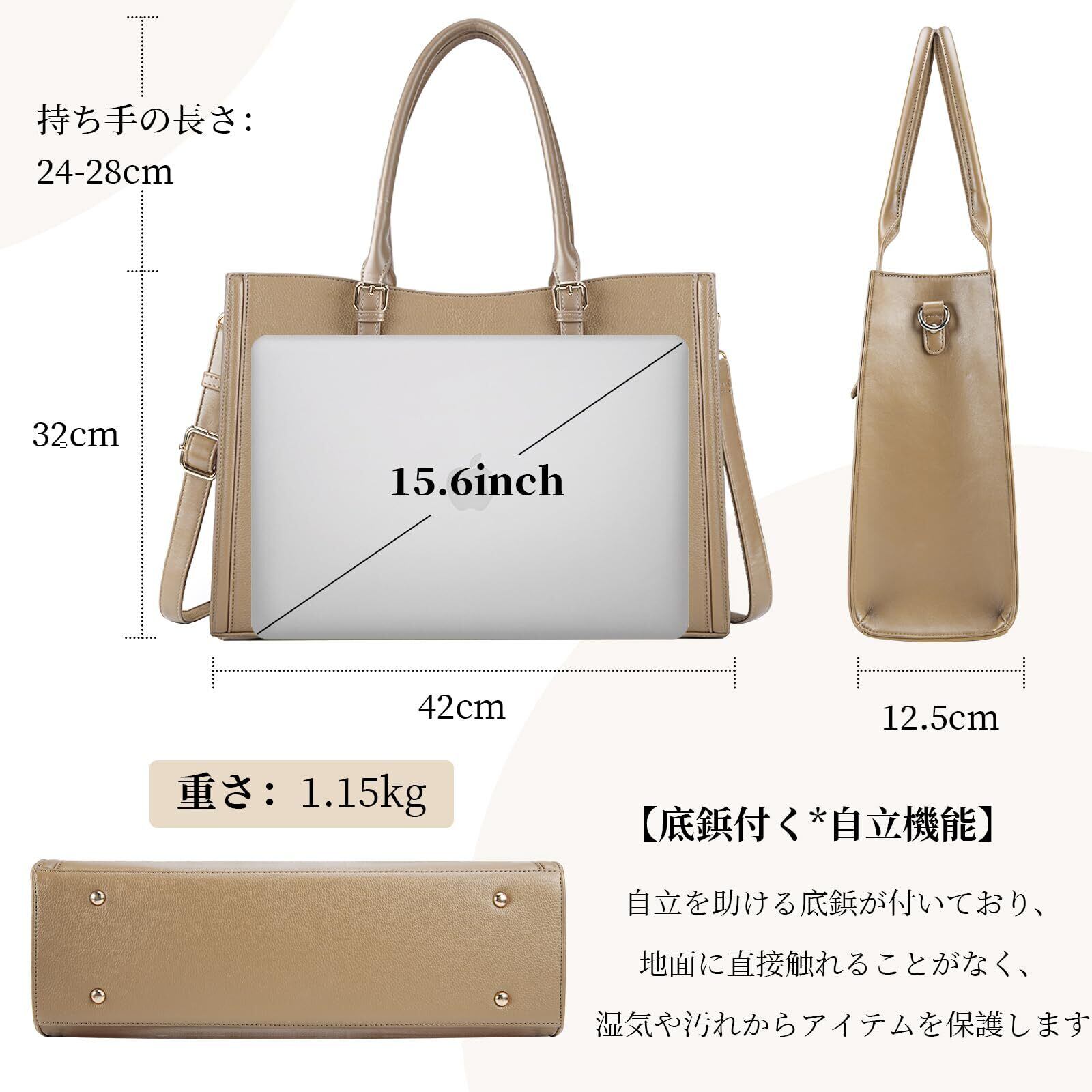 [IGOLUMON] トートバッグ レディース ビジネスバッグ 大容量 A4対応 15.6インチ ハンドバッグ 撥水加工 自立機能 就活 通勤 就職 ブラック グリーン ブラウン カーキ