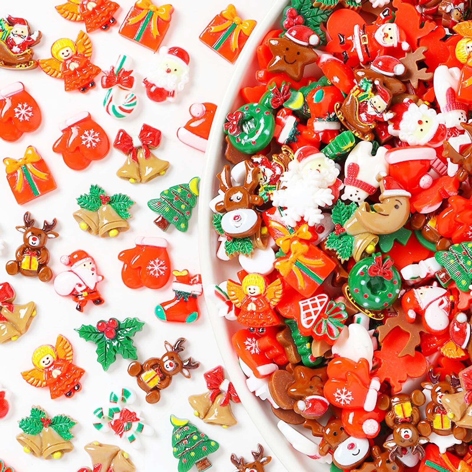 クリスマス デコパーツ 100個入り DIY材料 携帯ケース アクセサリー レジン 封入 サンタクロース サンタ帽 クリスマスツリー 手袋 可愛い 飾り ハンドメイド DIYジュエリー クリスマス 雑貨 手芸材料 ミックス ランダム形 (A)
