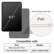 [互換性] iPad mini (A17 Pro 2024 モデル、第7世代) / mini 6 (2021モデル、第6世代) 8.3インチ用に設計されています。適合iPadモデル:A2993 / A2995 / A2996 / A2567 / A2568 / A2569。おデバイスの裏面にあるモデル番号をご確認ください