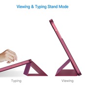 マグネット内蔵、オートスリープとオートウェイクアップ機能が付きます。三つ折りフロントカバーにより、視聴とタイピングに合わせた2つスタンド角度を調整できます