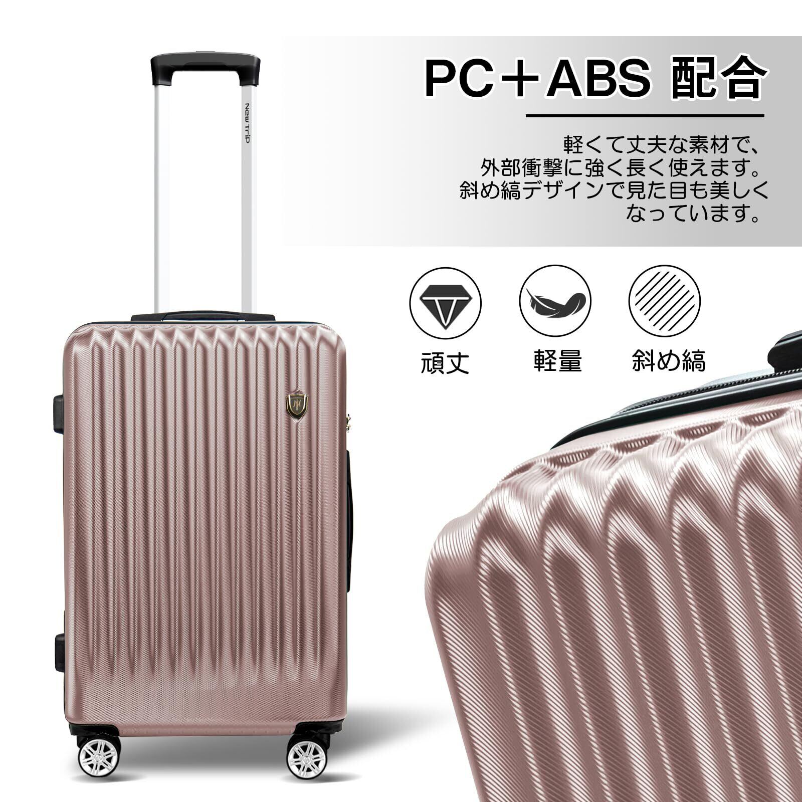[New Trip] スーツケース 機内持ち込み キャリーケース Sサイズ 40L 2-3泊 YKKファスナー キャリーバッグ ABS+PC 耐衝撃 超軽量静音 ダブルキャスター TSAローク ファスナータイプ 旅行 ビジネス 出張 入院 ローズゴールド色