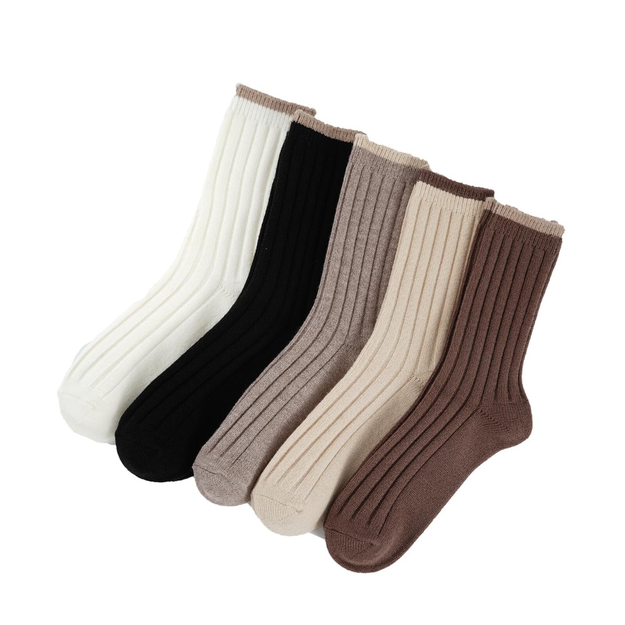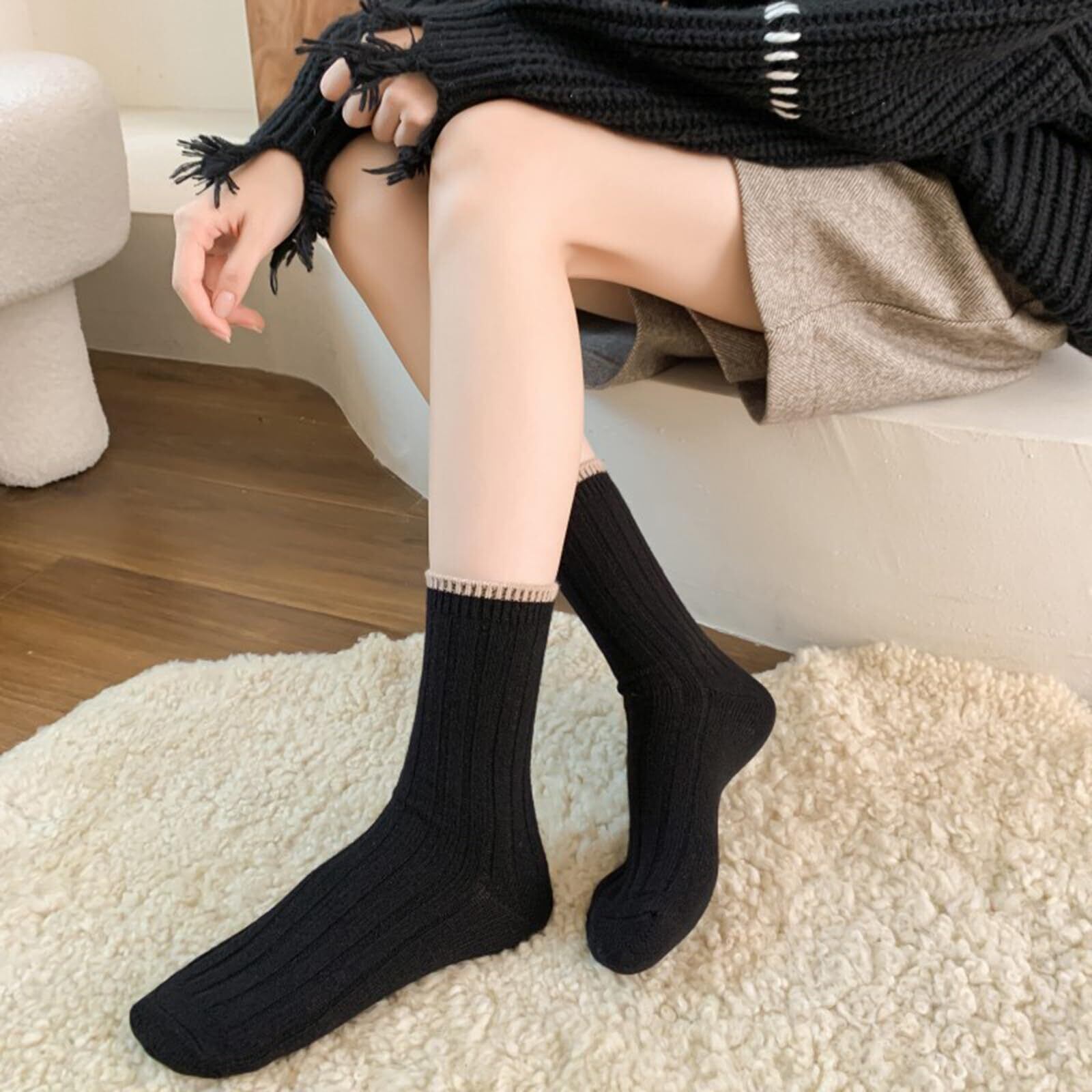 [DAMILY] 靴下 レディース 春秋冬 暖かい 綿 カラフル クルーソックス 中厚手 リブ柄 ルーズ くつした レディース おしゃれ コットン 保温靴下 女性 防寒 カジュアル 蒸れない スポーツ くつ下 22-25cm