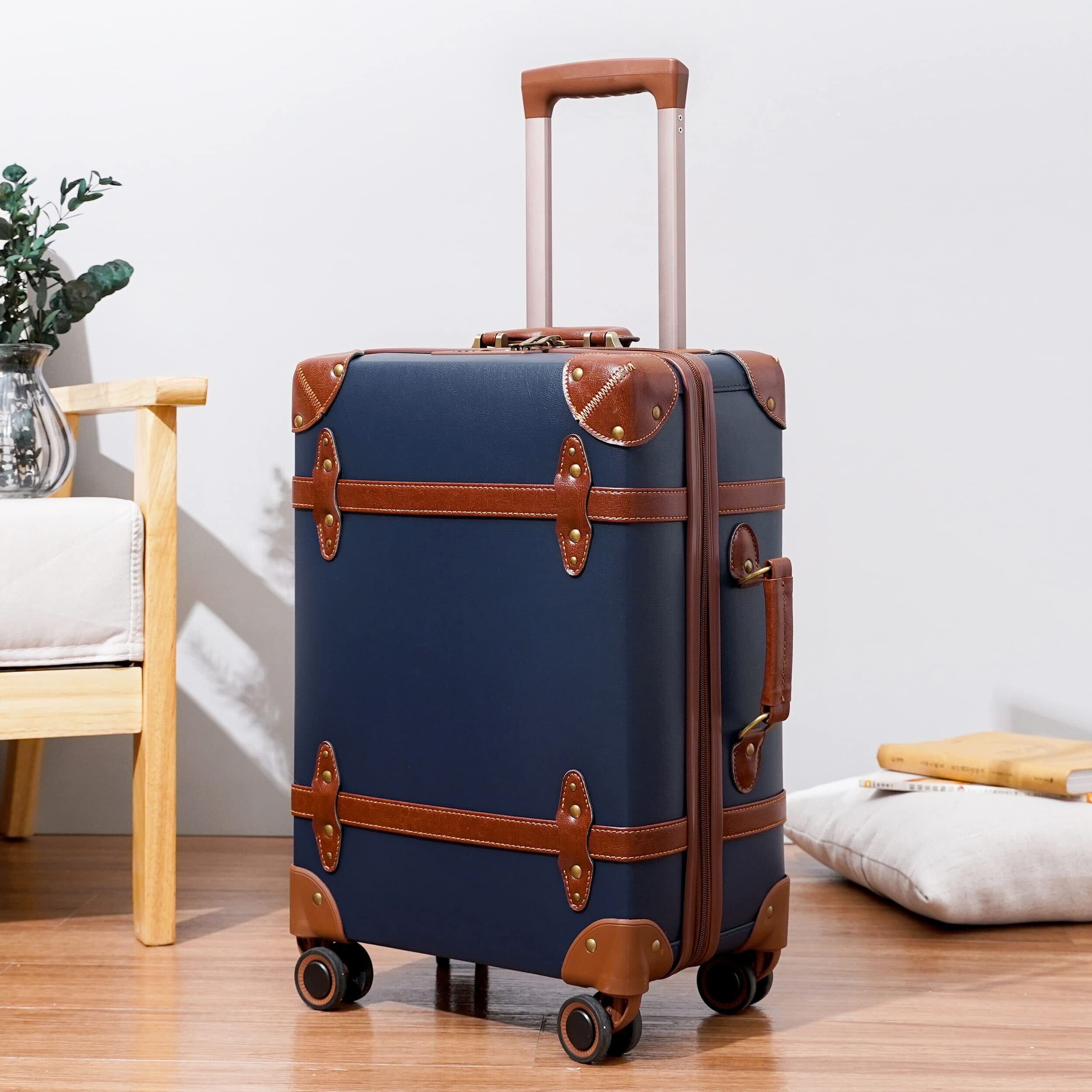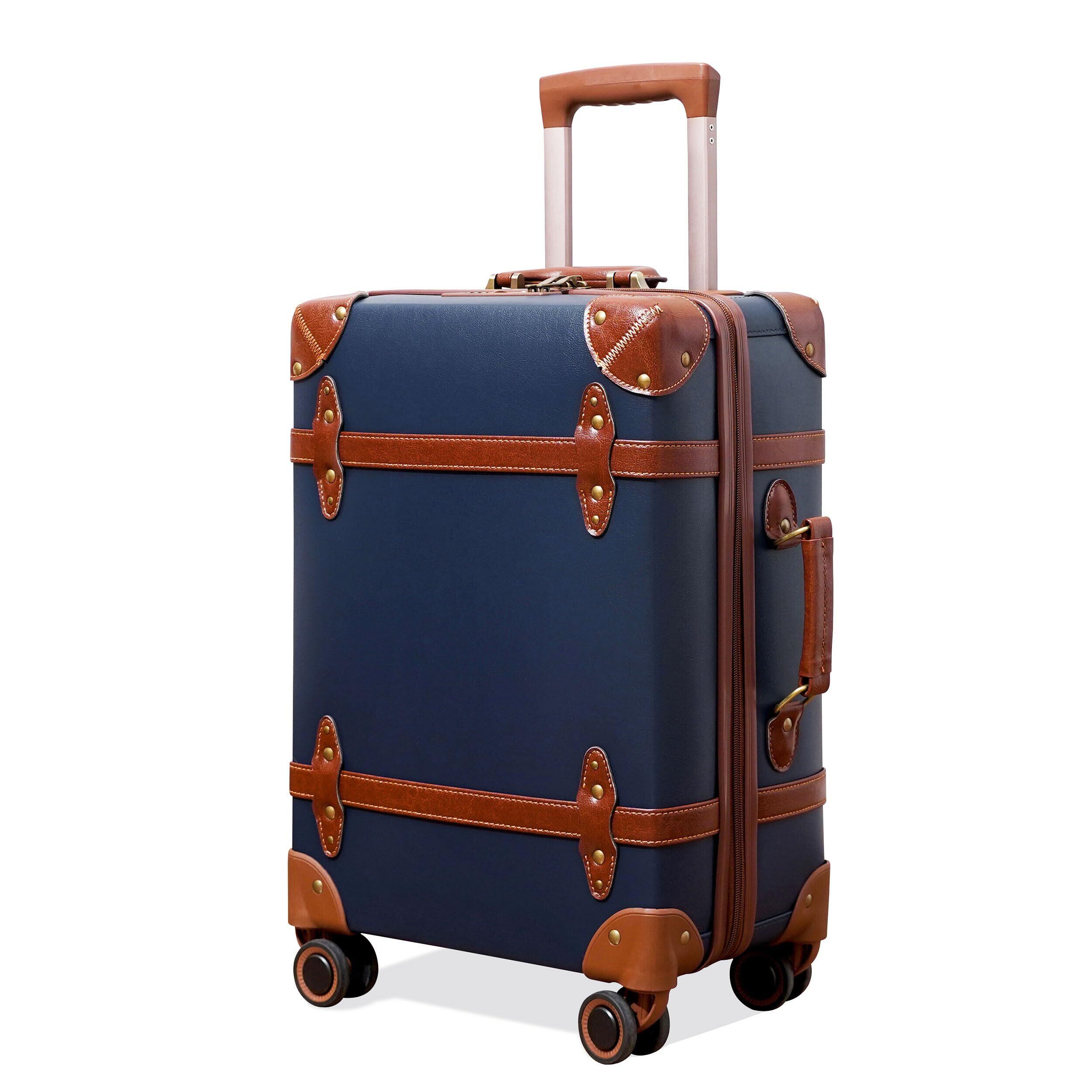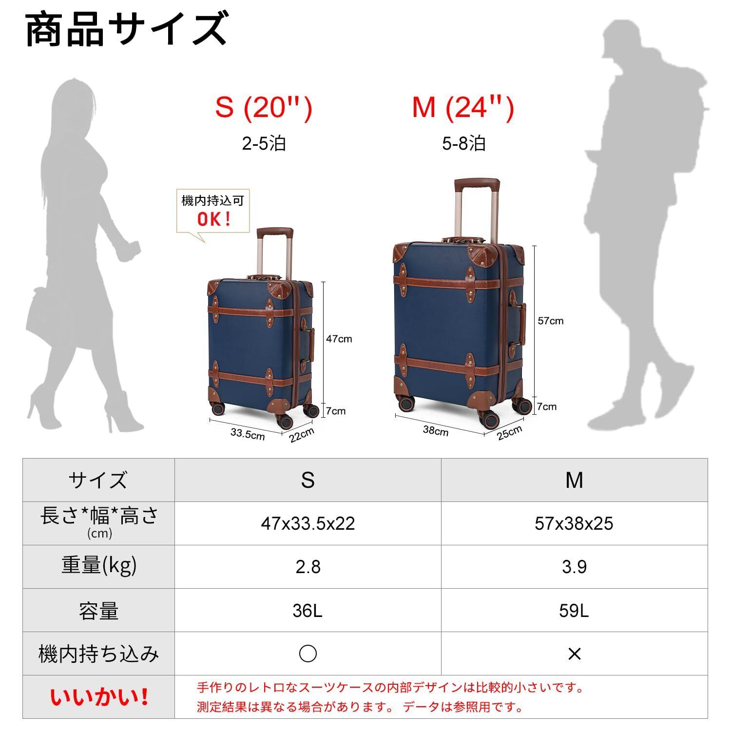 [NZBZ] ミュートスピンナーホイール付きのレトロなキャリーケース、おしゃれトランクスーツケース可愛い、キャリーケース 機内持ち込み 軽量、ビジネス、学校、旅行に適した軽量トロリースーツケース (S(20") 型, ブルー)