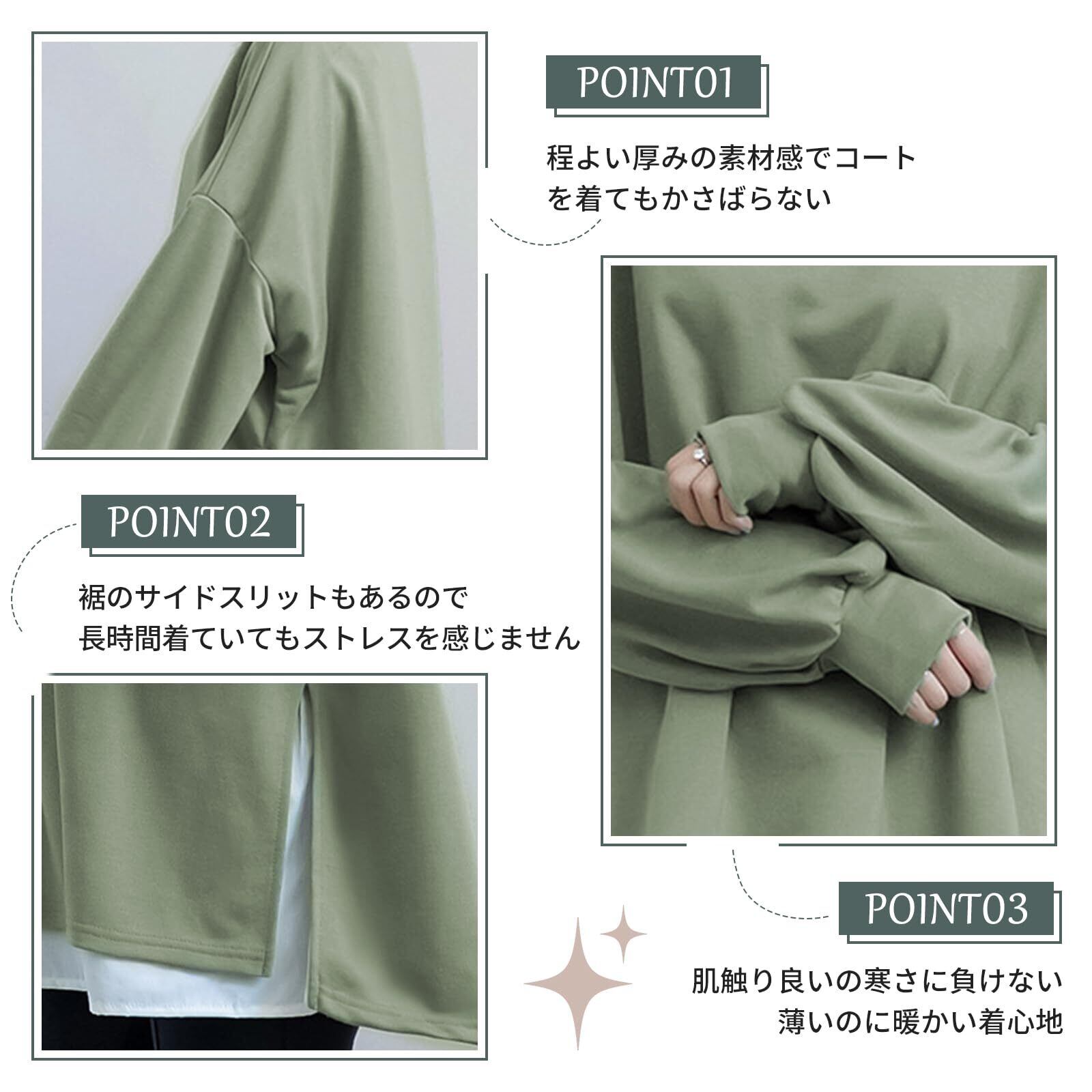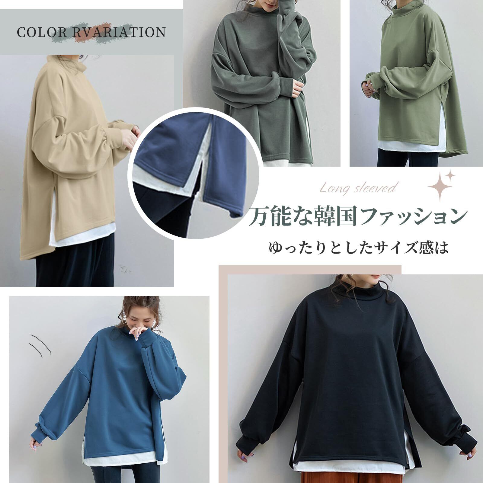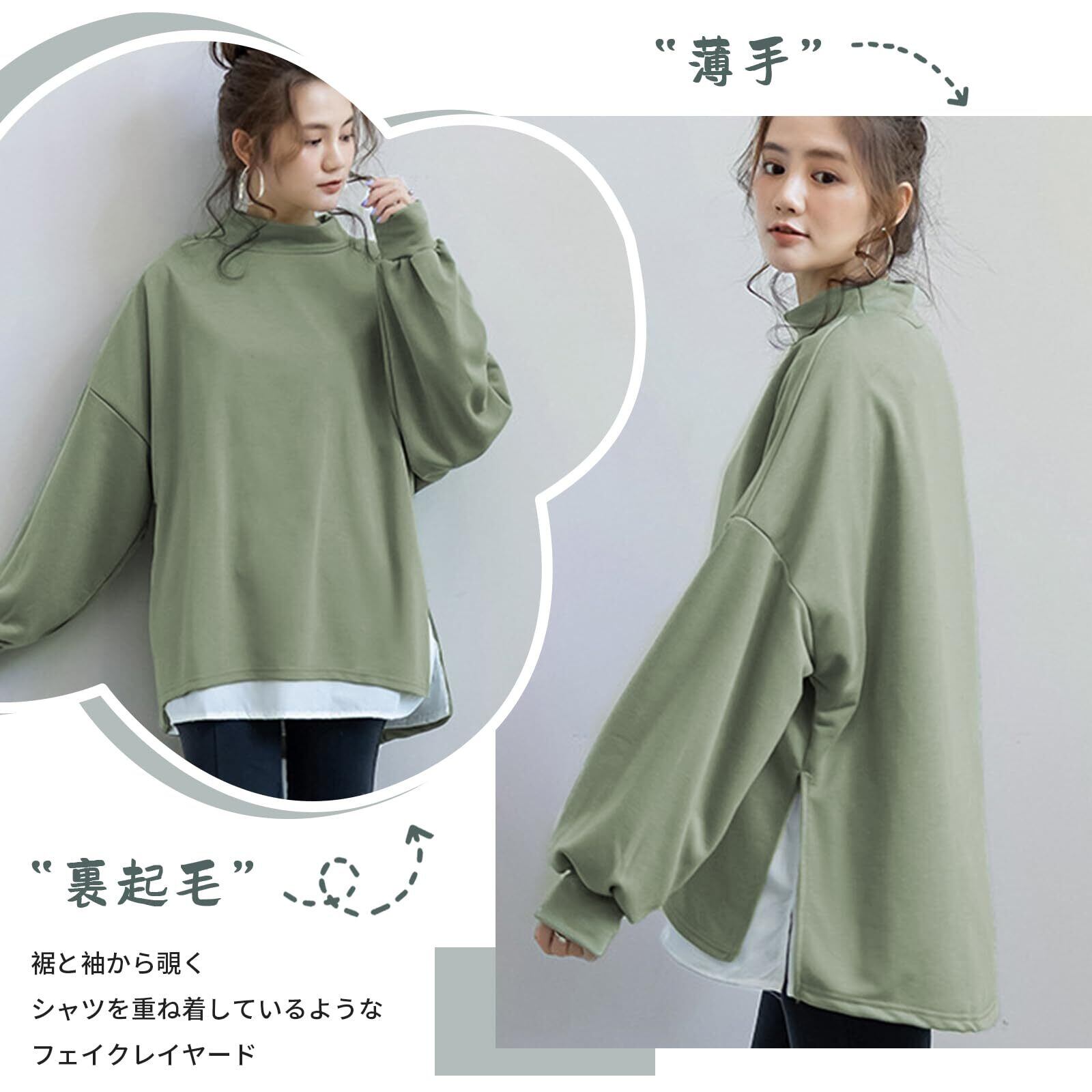 【人気の重ね着風トレーナー】女性らしい魅力と可愛さを演出でき、暖かさと防寒性も叶えるレディース重ね着風ったりトレーナー です。ゆるっとしたサイズと、ヒップ辺りまである長め丈で、着用ができるのが魅力でユニセックスアイテムとしても着て頂けます。重ね着風のデザインが一枚着でもコーディネートが簡単に決まる、忙しい朝にはおススメアイテムです。