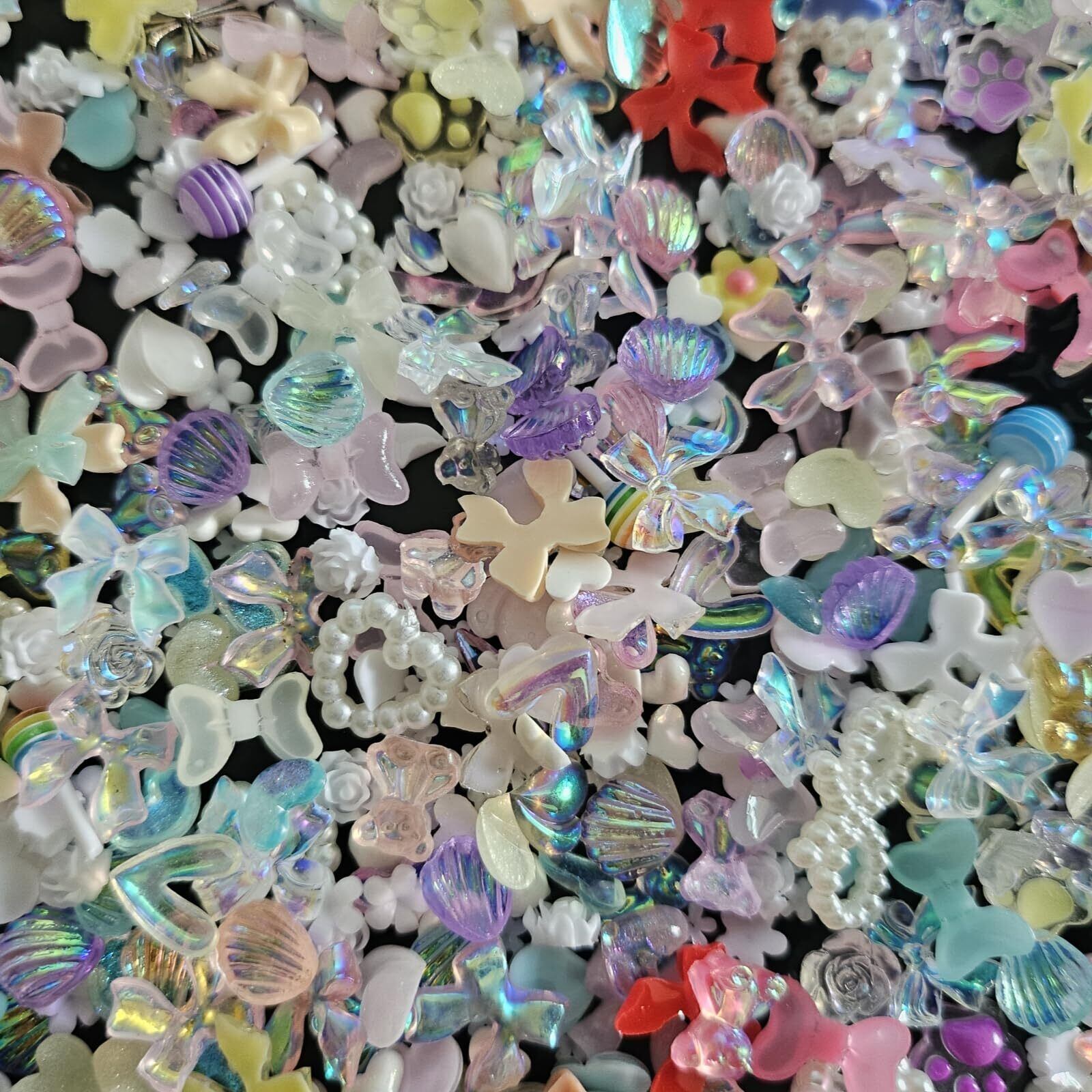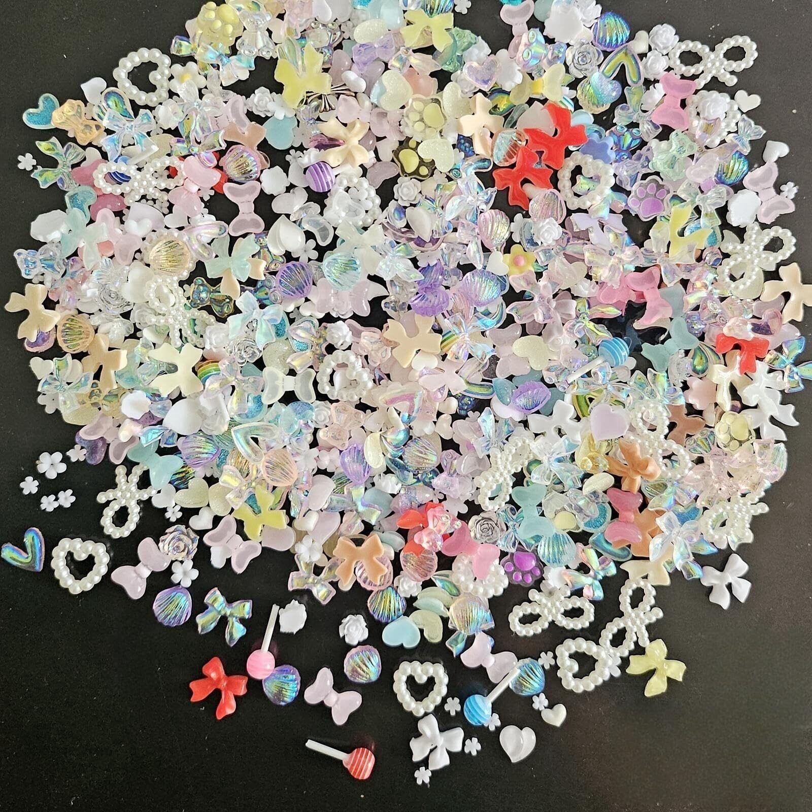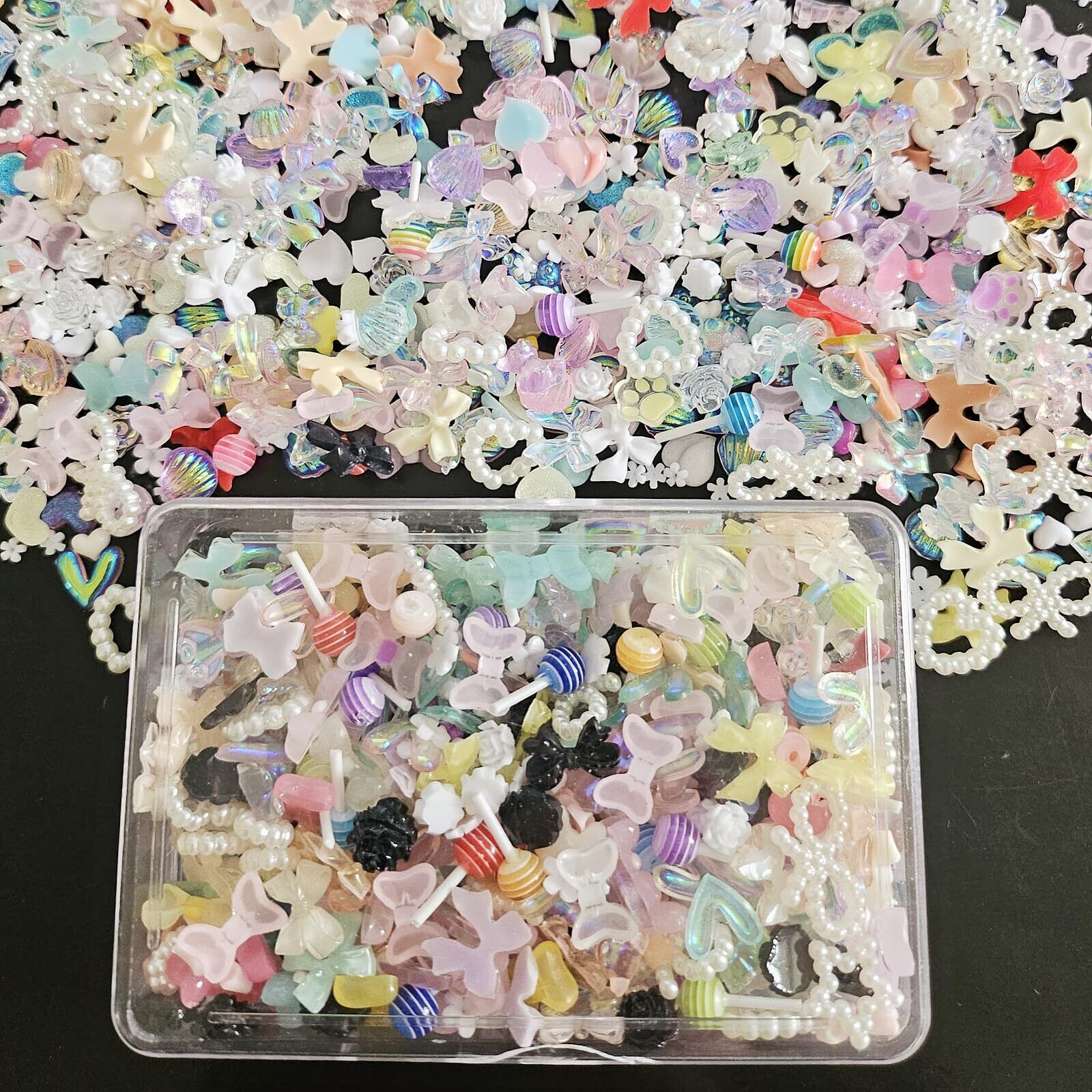 ネイルパーツ オーロラ 約500個セット 3D 立体 クマ 花 蝶 リボン ハート キャンディ 可愛い 大きめ レジン ジュエリーパーツ ネイルアート ハンドメイド デコパーツ DIY ケース付き ランダム形 (オーロラ)