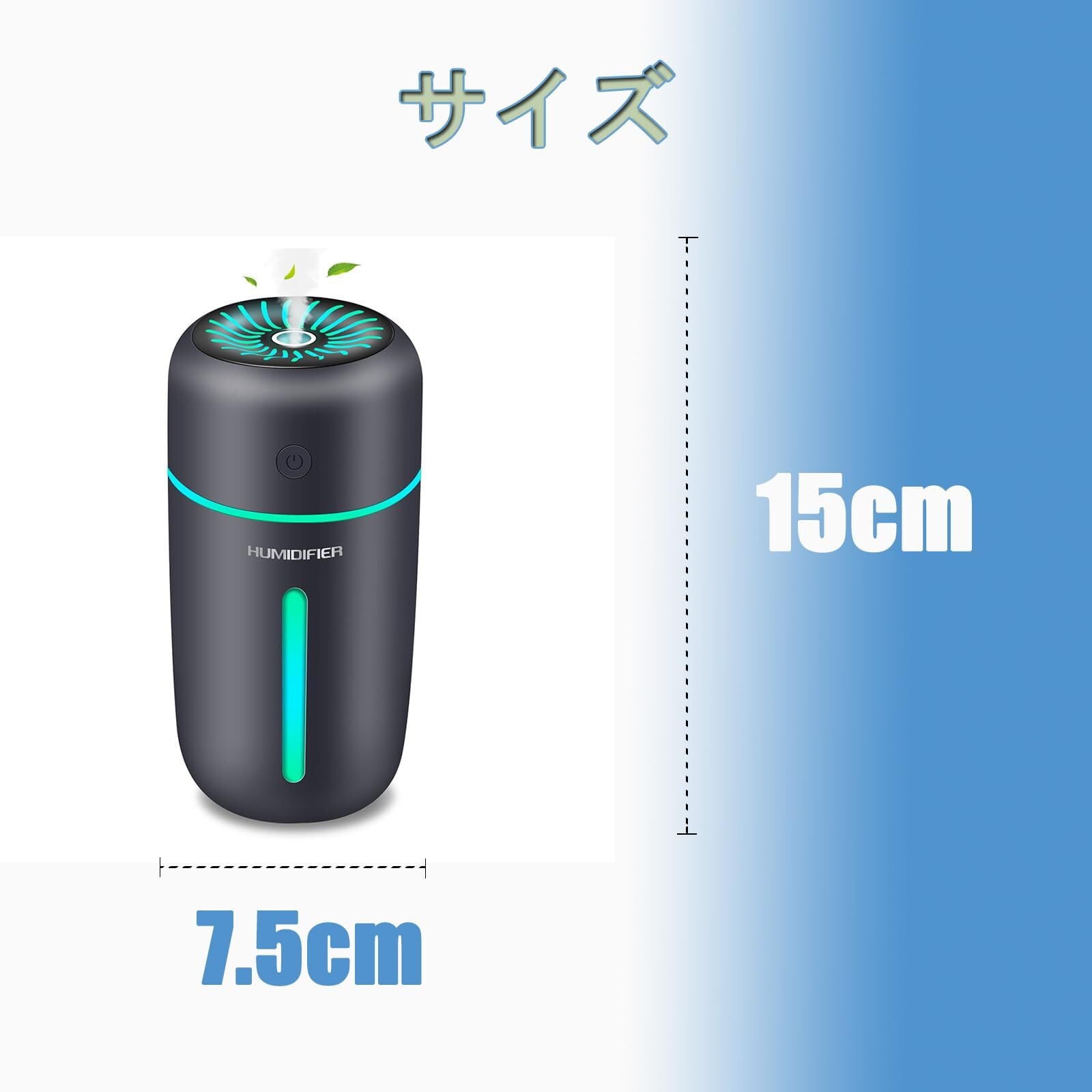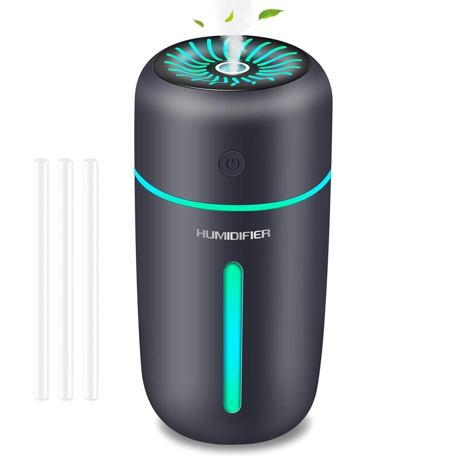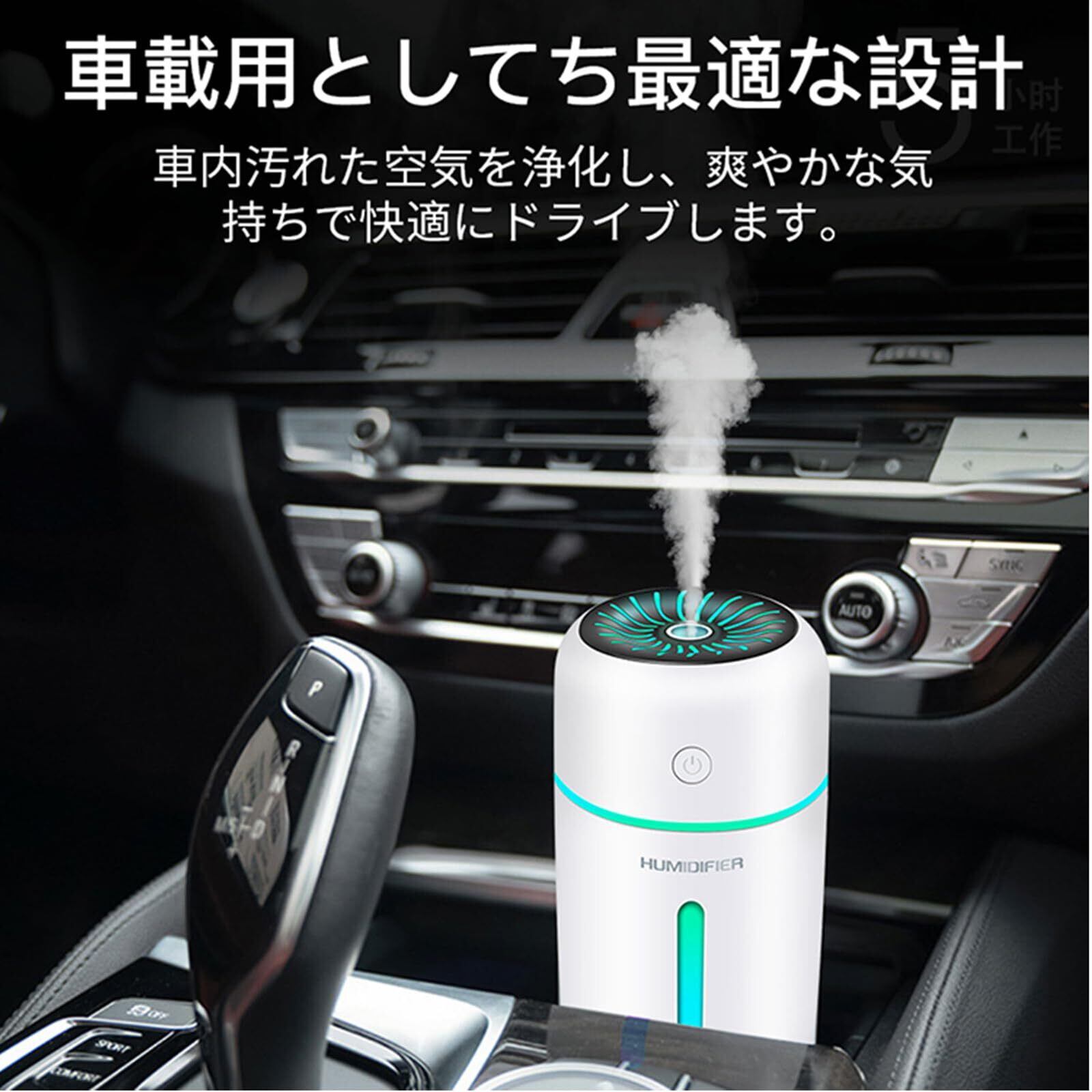 加湿器 卓上 デスク 小型 車載加湿器アロマディフューザー超音波式 350ml 大容量 コードレス 気化式 2段階ミスト 7色LEDライト 水漏れ防止 長時間運転 自動停止機能 オフィス 子供部屋 寝室 家庭 用(Black 01)