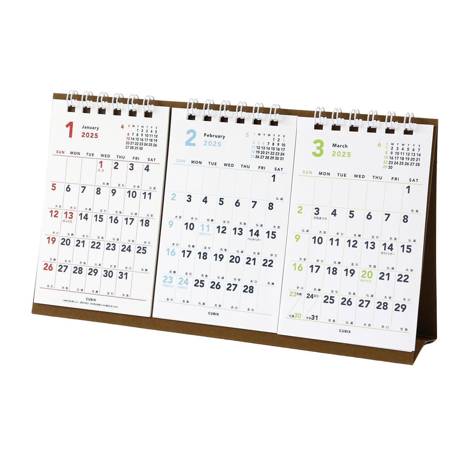 エムプラン 2025年 カレンダー キュービックス 卓上 3ヶ月 ベーシック 203907-01 2025年 1月始まり