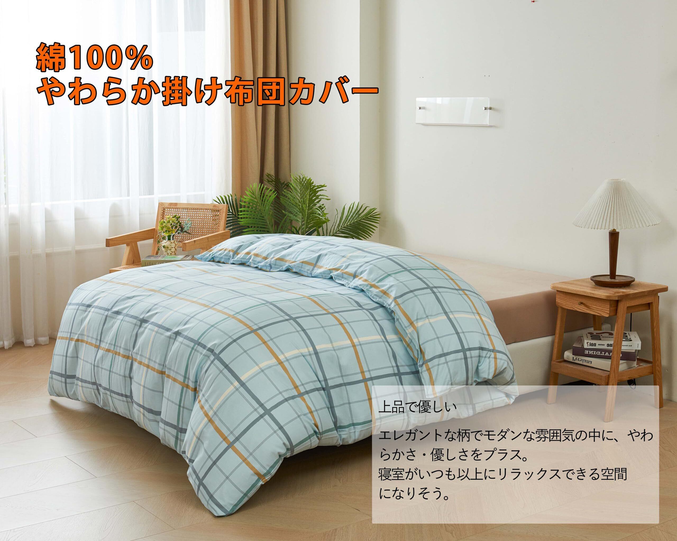 掛けふとんカバー シングル 150x210cm 綿100% リバーシブル 掛けカバー エレガント チェック柄 おしゃれ 速乾 通気 単品売り 防ダニ