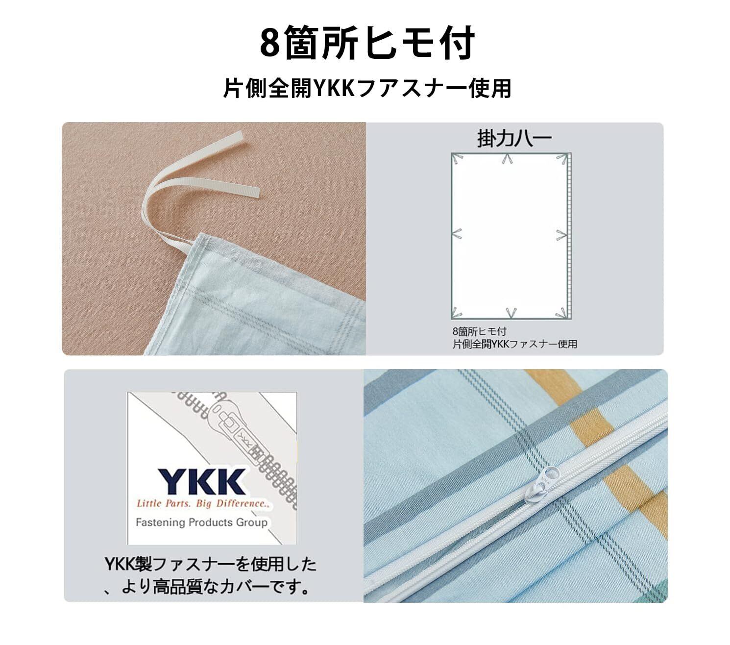 【仕様】YKKファスナー使用,布団留めヒモ8ヶ所付き。