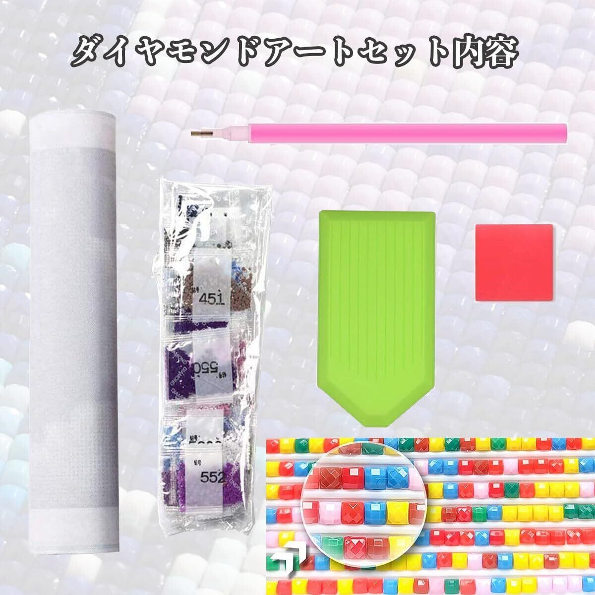 【ダイヤモンドアートセット内容】1x 5Dダイヤモンドアート、1x ダイヤモンドキット、1x ダイヤモンド粘着ペン、1xトレー、1x グルー。家族と暇つぶしで、ダイヤモンドアートを一緒に楽しましょうよ!DIYの絵画、創意工夫、ダイヤモンドビーズ樹脂で絵を描きます。