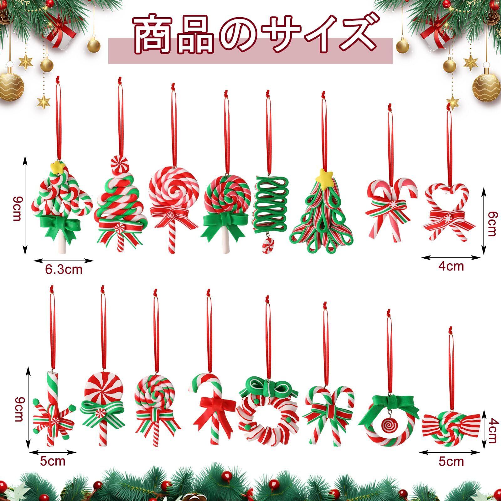 耐久性のある材質:クリスマスツリー オーナメントは良質なポリマー粘土で作られており、壊れにくく、耐久性があり、長く使えます。寿命が長いため、クリスマス後に保存して再利用することができ、キャンディパーティーの装飾に使用できます