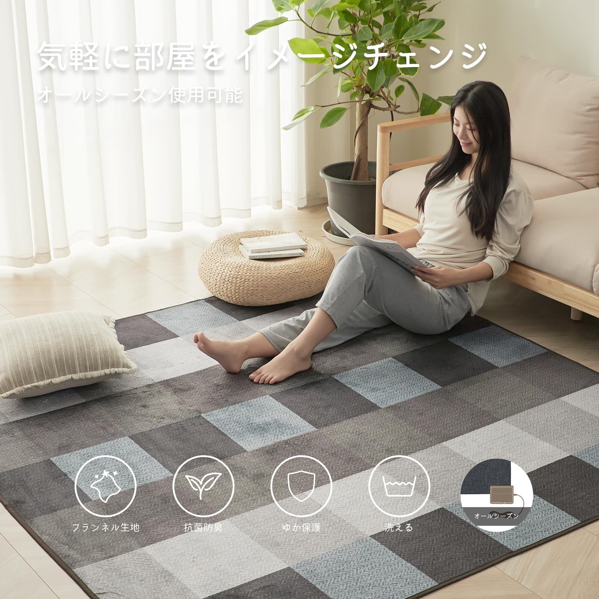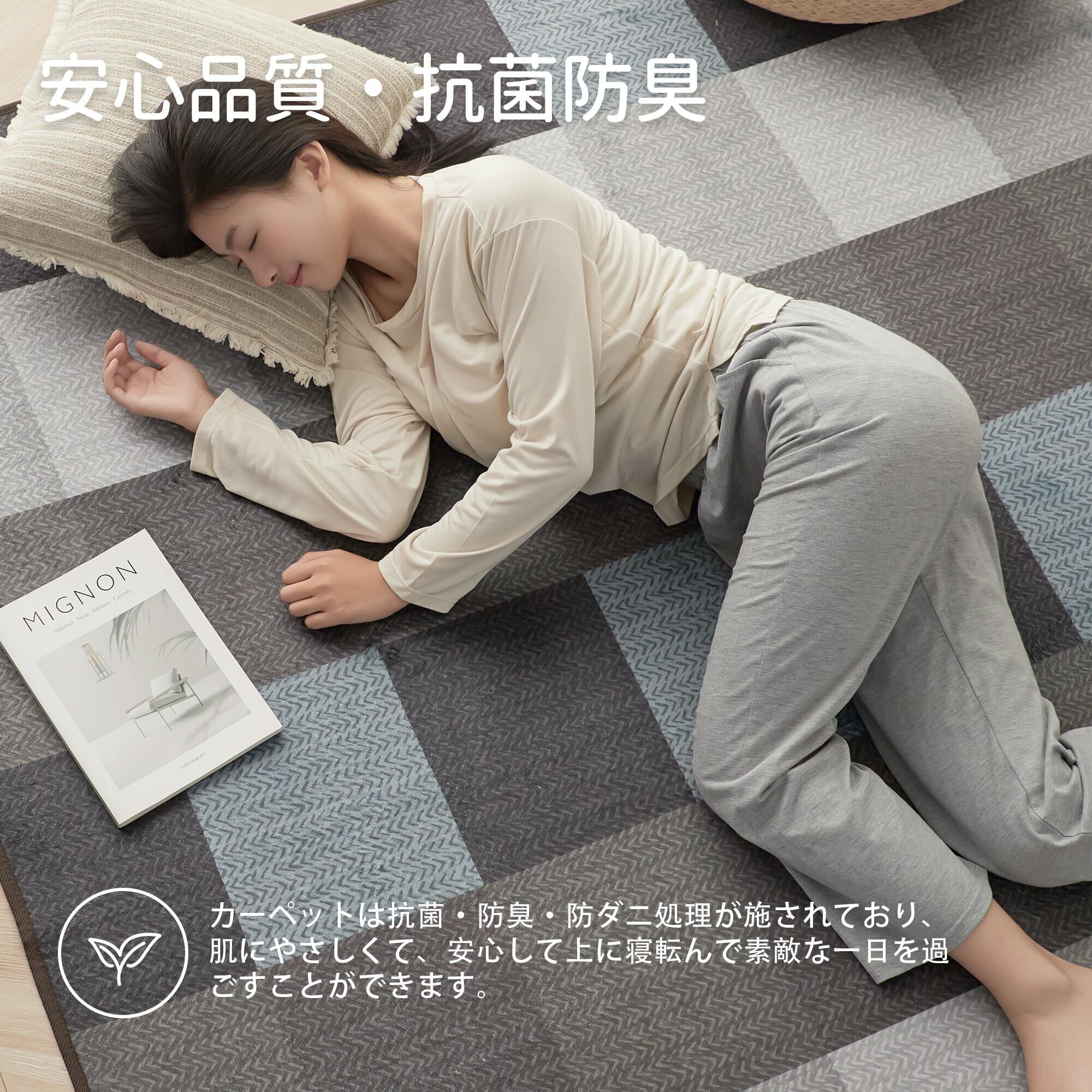 HARUMIN カーペット ラグ ラグマット 洗える 200×250cm 約3畳 絨毯 北欧 おしゃれ 抗菌 防臭 滑り止め オールシーズン 床暖房 ホットカーペット対応 床保護マット チェックブラウン