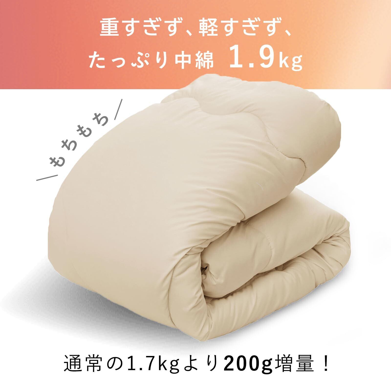 【ボリュームたっぶり 通年うれしい暖かさ】中わたを従来の1.7kgから1.9kgに増量。ボリューム感たっぶりなので、春秋冬と幅広く暖かく使えます。真冬でも毛布と併用すれば十分暖かく過ごせます。ロングサイズなので、背の高い方も足元がすっぽり包まれ、暖かく過ごせます。