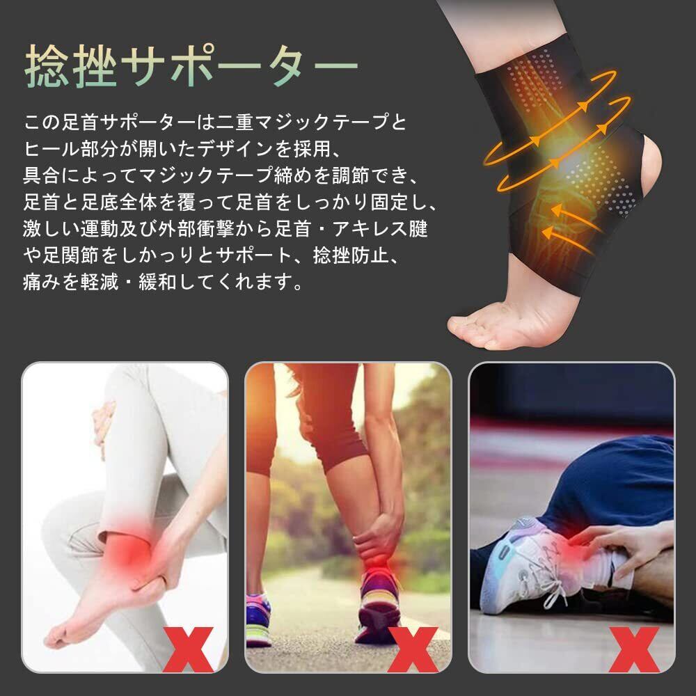 【捻挫サポーター】この足首サポーターは二重マジックテープとヒール部分が開いたデザインを採用、具合によってマジックテープ締めを調節でき、足首と足底全体を覆って足首をしっかり固定し、激しい運動及び外部衝撃から足首・アキレス腱や足関節をしかっりとサポート、捻挫防止、痛みを軽減・緩和してくれます。