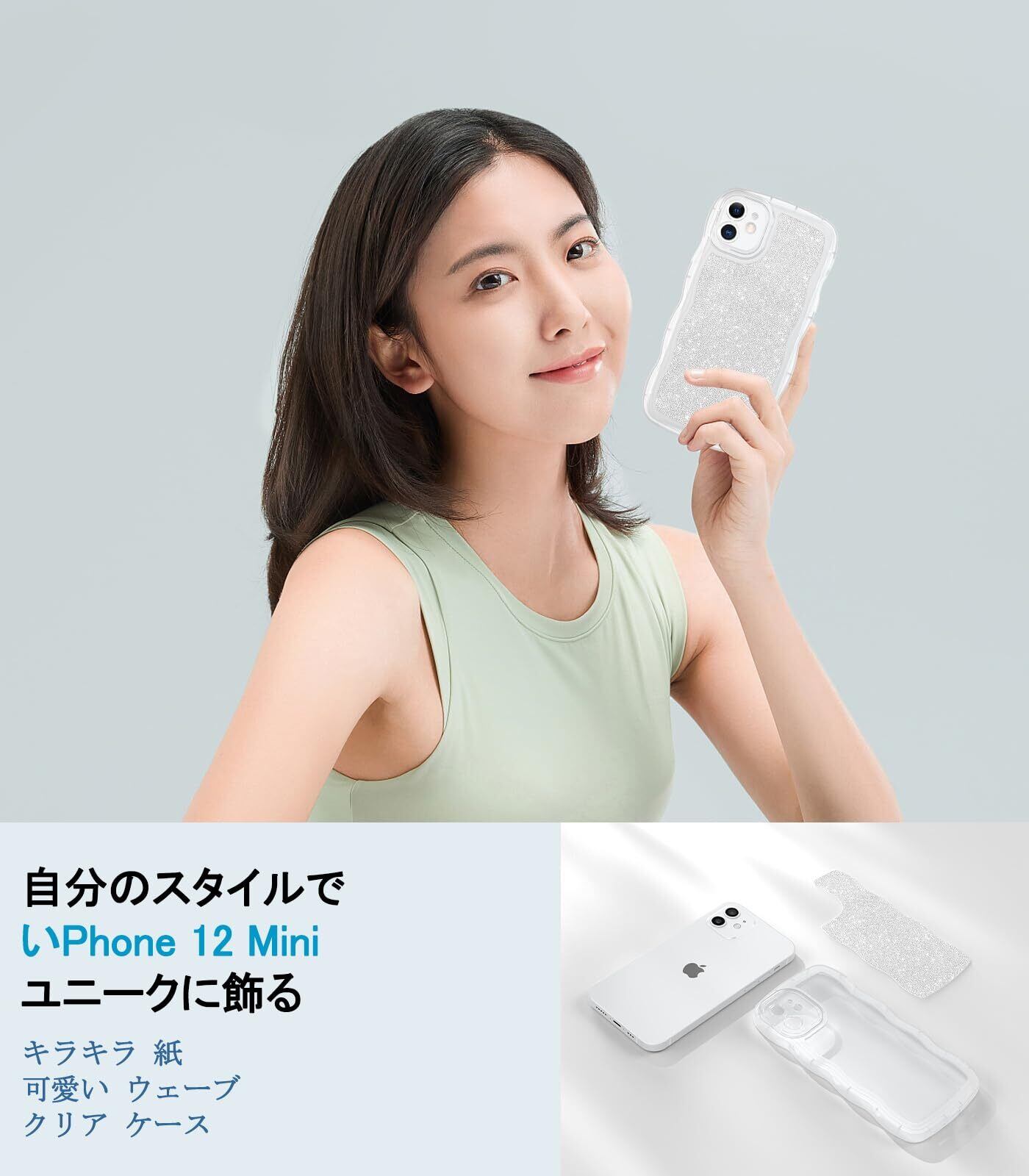【2-IN-1ウェーブケース+キラキラ紙】2in1デザイン:透明なみなみケース+キラキラ紙。2つの使い方:純粋な透明ケースは電話本体を直接見ることができます。または、キラキラ紙とクリアケース一緒に使用して、携帯電話を輝かせます。自分のスタイルでアイフォンiPhone12Miniユニークに飾ります。