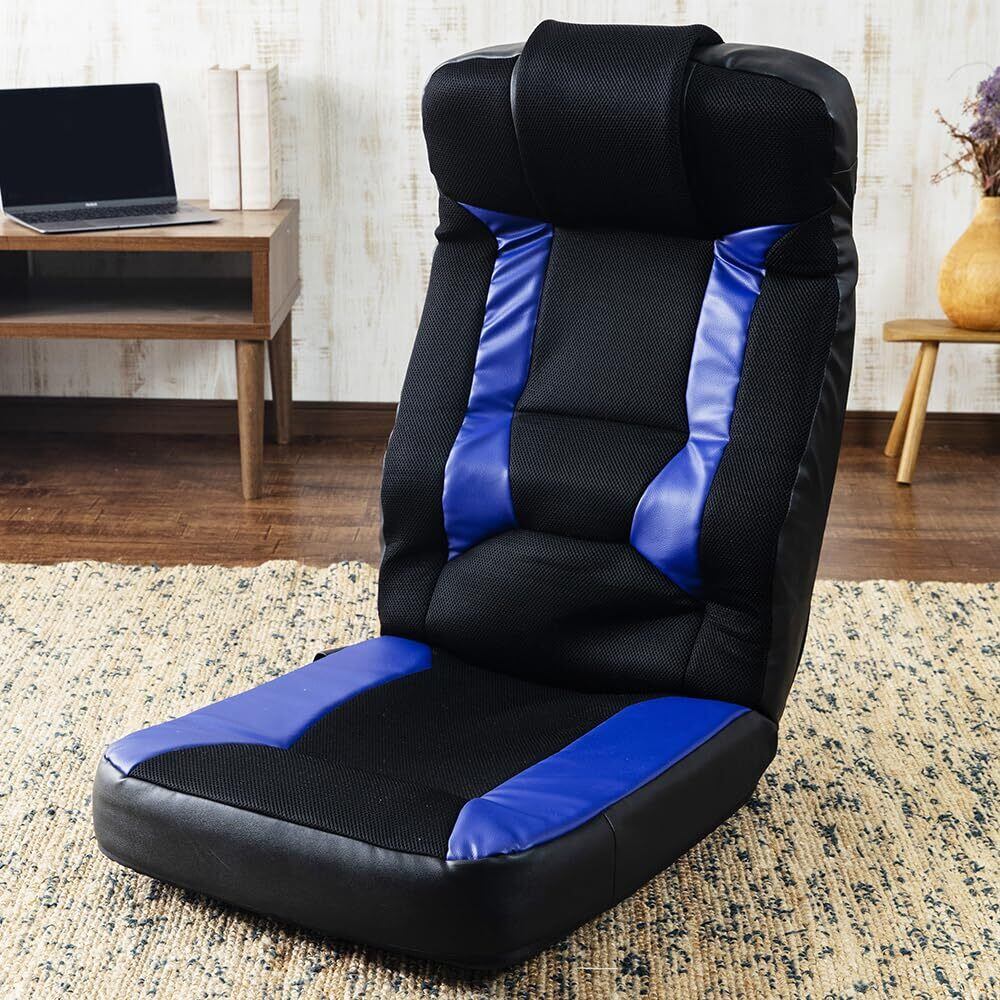 アイリスプラザ ゲーミング座椅子 座椅子【通気性メッシュ製】 ゲーミングチェア 通気性 リクライニング ヘッド部調節可能 収納可能 ブルー GCN-4812 48×64×77
