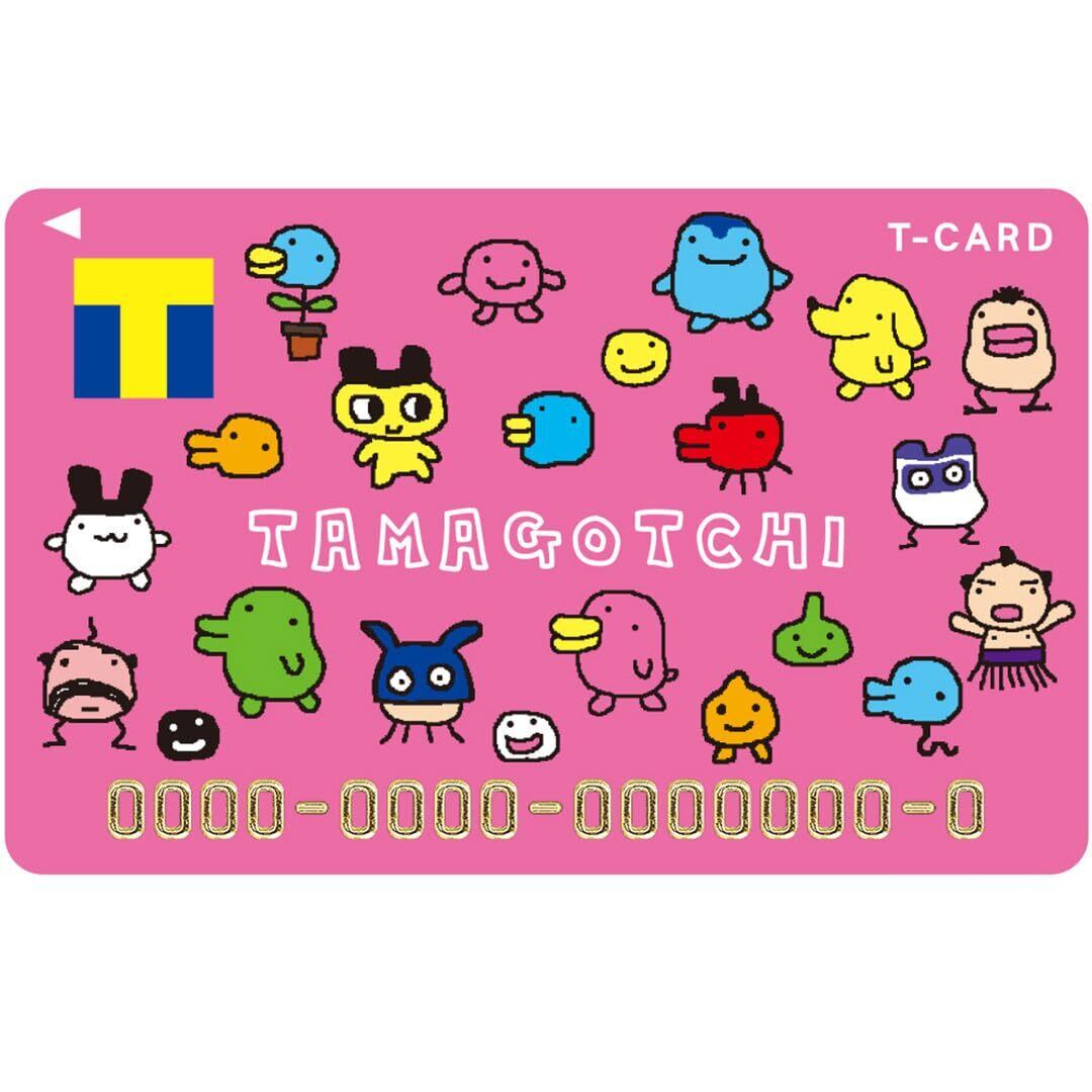 たまごっちのキャラクターが集合したピンクが目を引くTカード!お気に入りのキャラクターを見つけてください