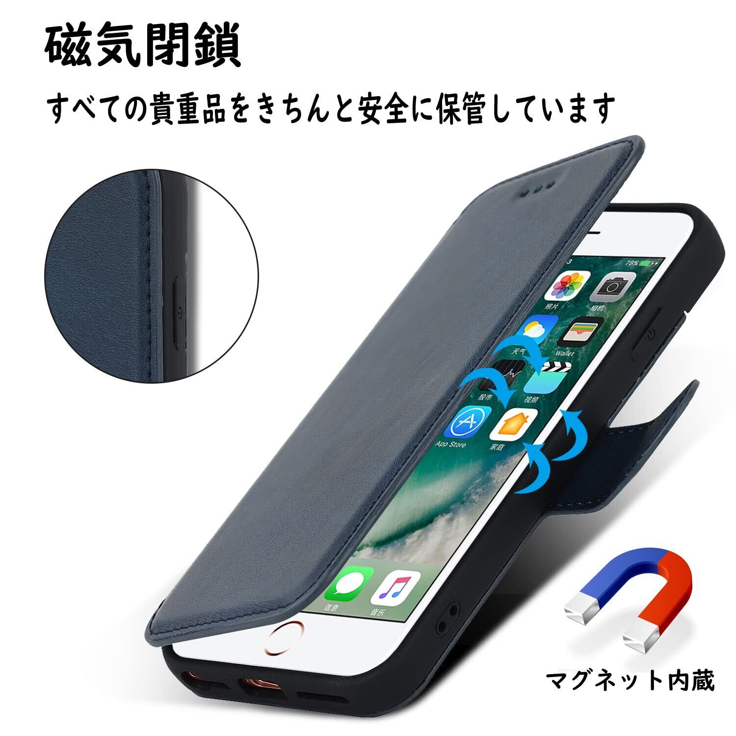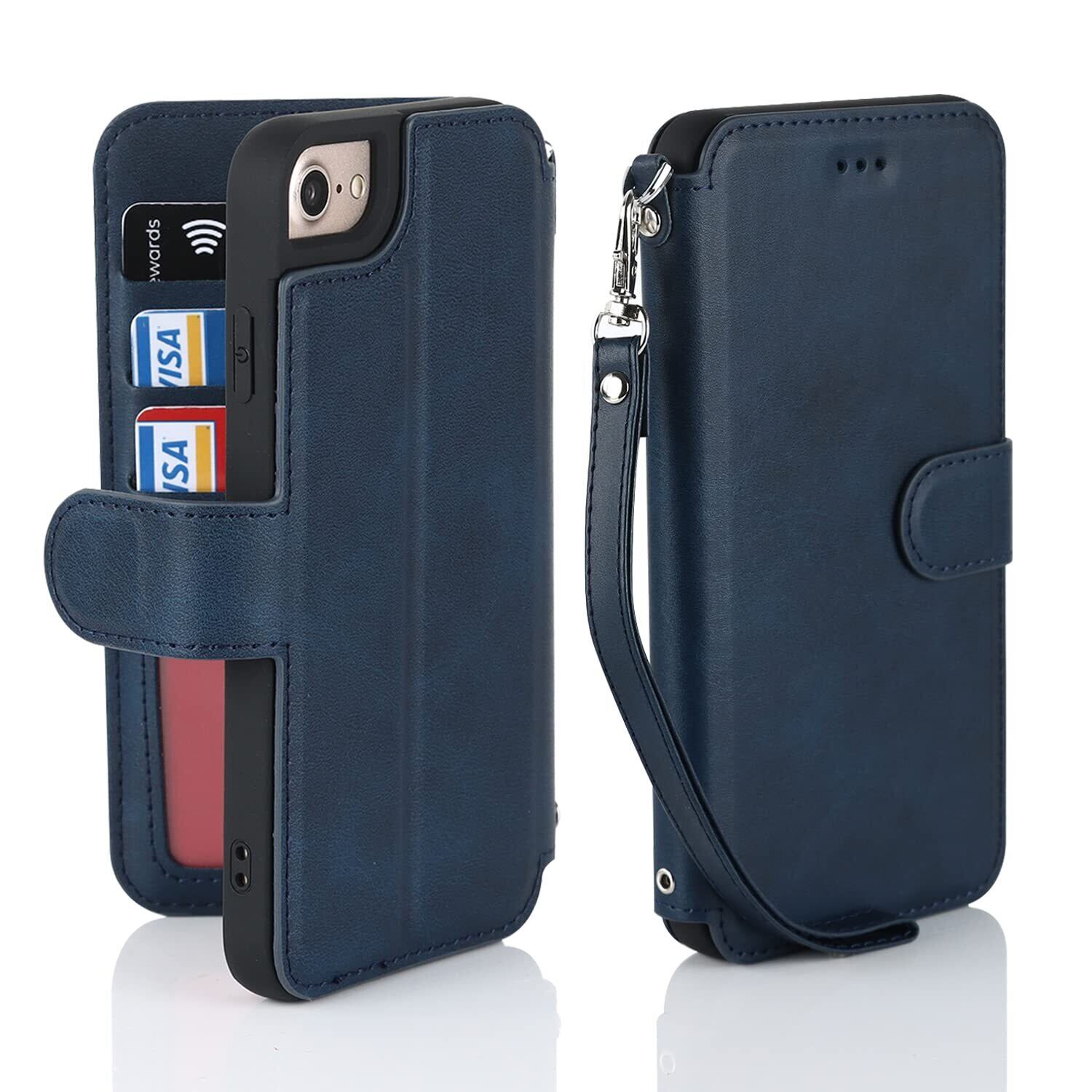 Havaya iPhone SE3 ケース iphone8 ケース 手帳型 アイホンseケース 第3世代 第2世代 米軍MIL規格 軽薄 ストラップ 耐衝撃 レンズ保護(アイフォンSE3 /あいふぉんSE2/いphone8/アイホン7/アイフォン6/6s 4.7インチ対応)-ブルー