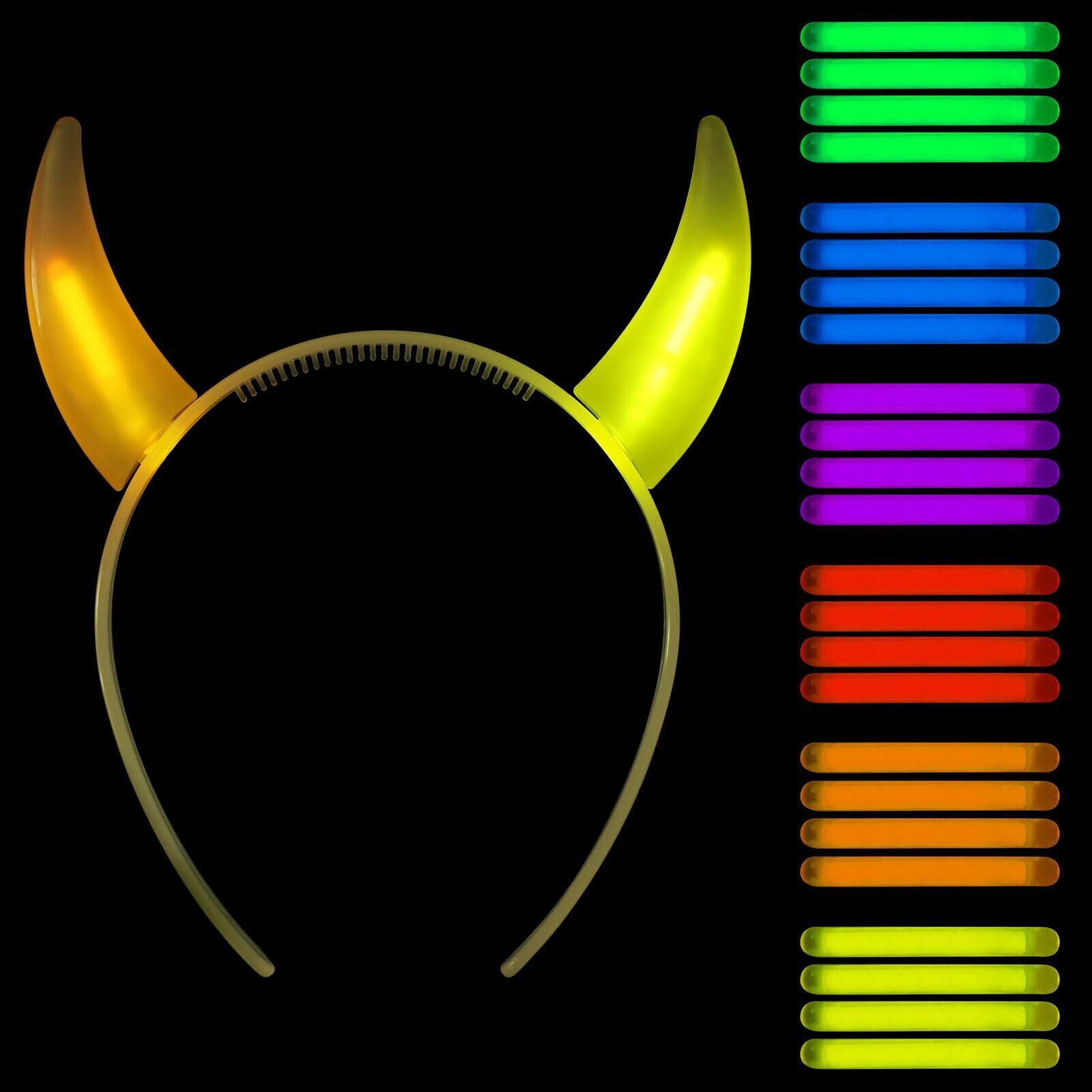 セット:牛の角のヘアバンド6個+専用小型蛍光棒24本(6色、各色4本、合計24本)