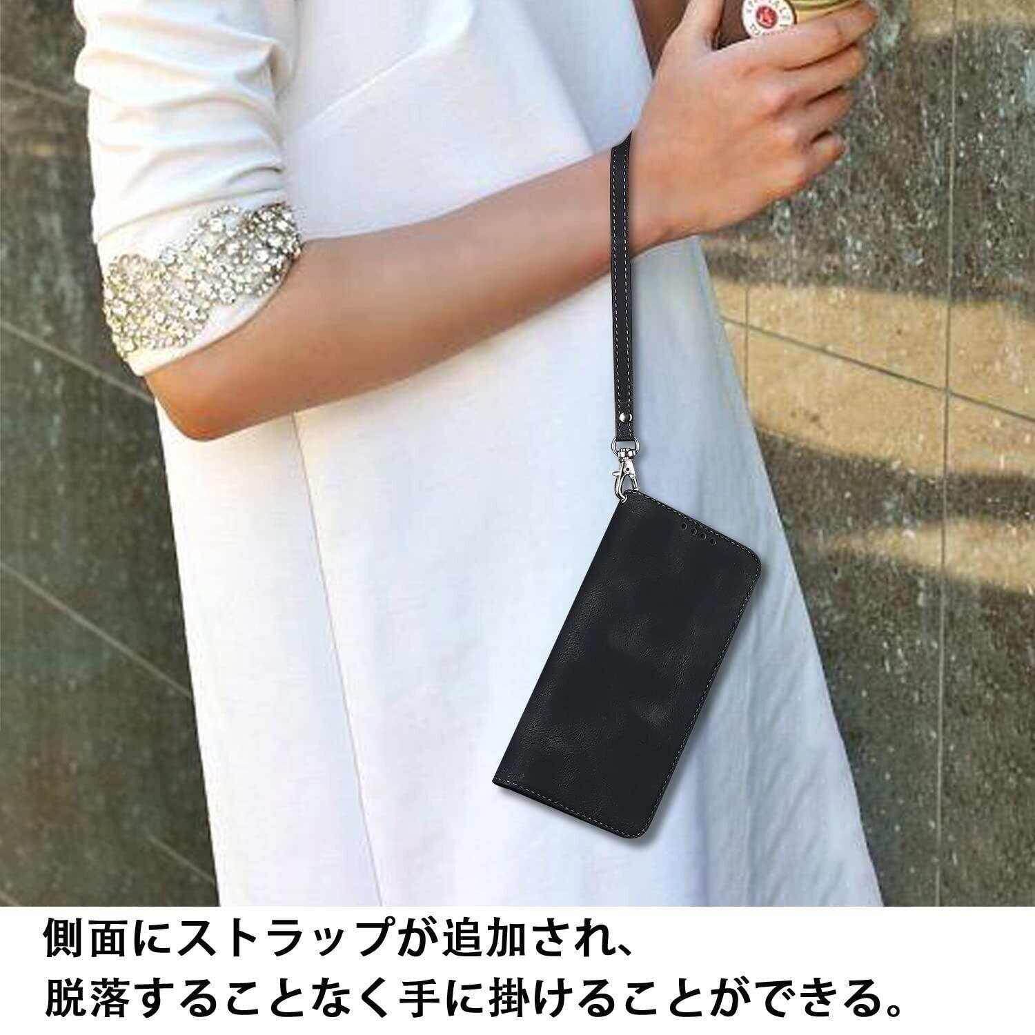 Havaya Galaxy S22 Ultra ケース ギャラクシーs22 Ultra ケース 手帳型 au SC-52C カバー SCG14 ストラップ SC52C 耐衝撃 ドコモ サムスン samsung カード収納 SoftBank レザー スエードの質感-ブラック