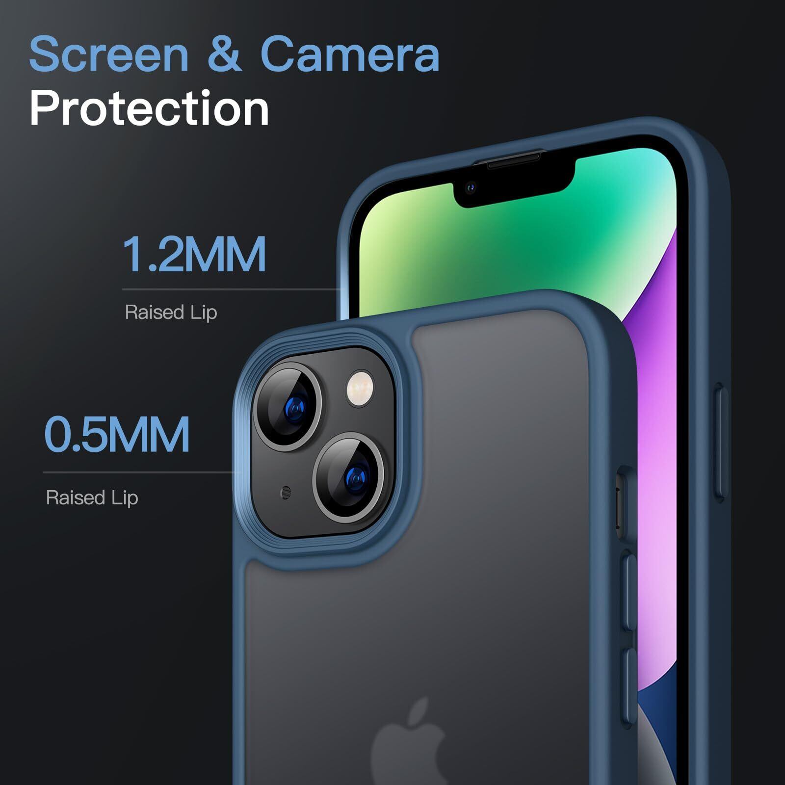 JEDirect マットケース iPhone 14 6.1インチ用 耐衝撃性ミリタリーグレードの落下防止 つや消しの半透明の背面電話カバー 指紋防止 (ストームブルー)