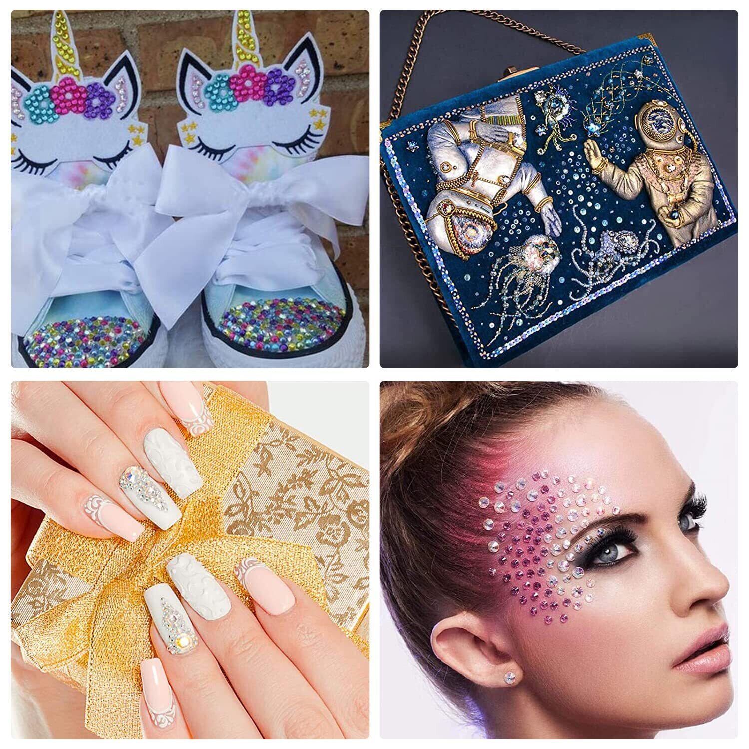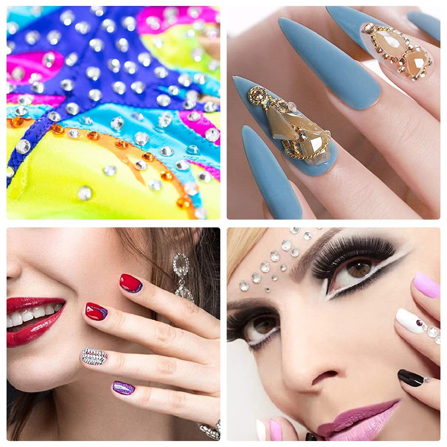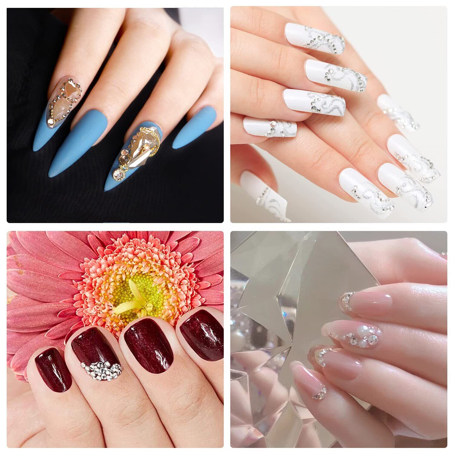 【ネイルアートデコレーションに最適】-シャイニーネイルアートラインストーンセットは、マニキュアに輝きを与えるのに最適で、ミニマリストのマニキュアからドラマチックなマニキュアまで、あらゆるものに無限の可能性を開きます。あらゆるマニキュアに最適です。また、電話ケース、靴、洋服、ギター、タブレット、スクラップブッキングなどのフェイシャルメイクやDIYクラフトデコレーションにも最適です。