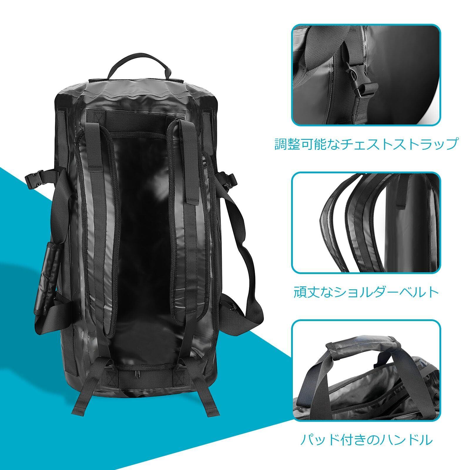 ️機能:内部に小物用ポケット1個;、防水仕様のサイドポケット1個;開口部がU字ファスナーなどで大きく開けて、着替えやギアなどをたくさん詰め込みやすいうえ、荷物をスムーズに取り出しやすい。