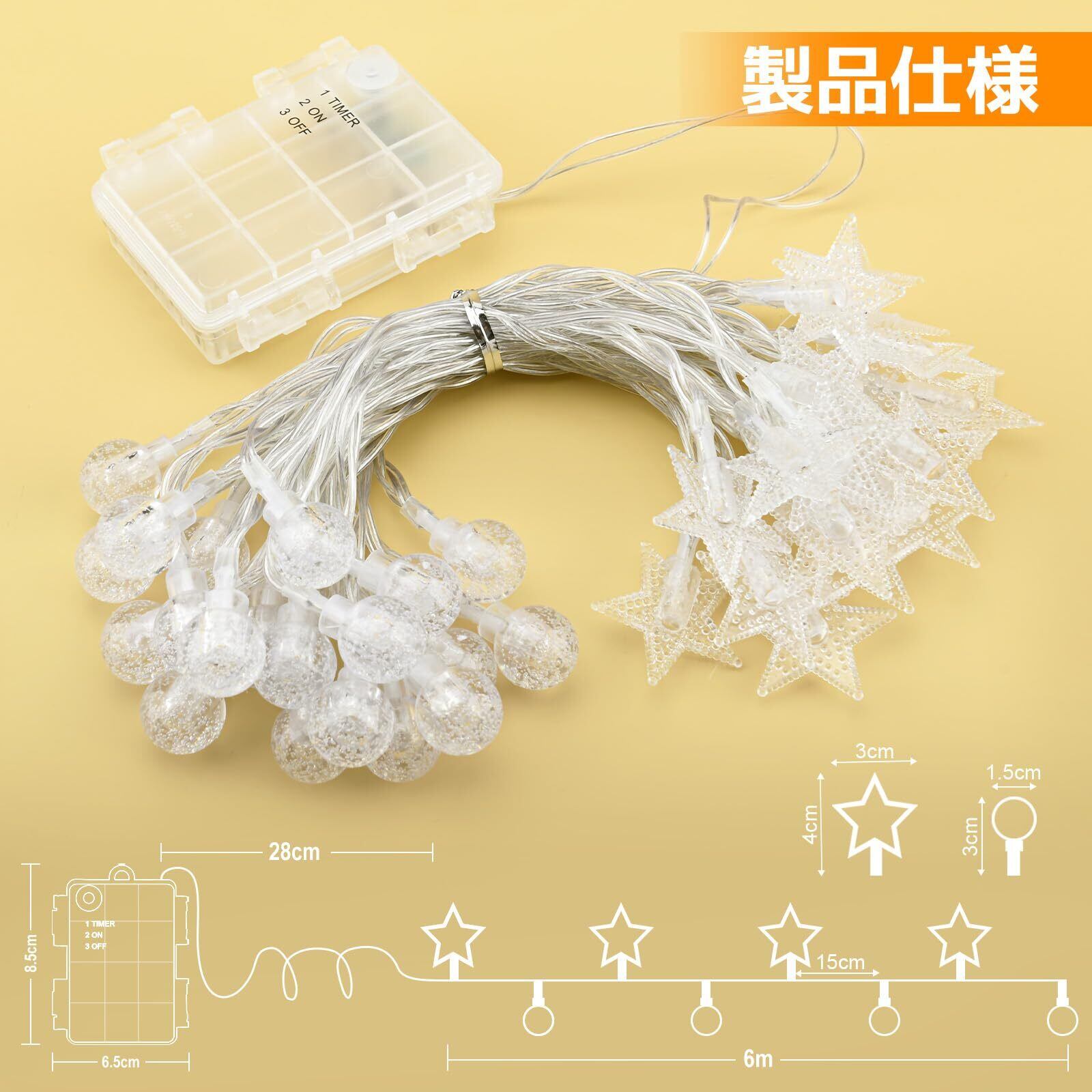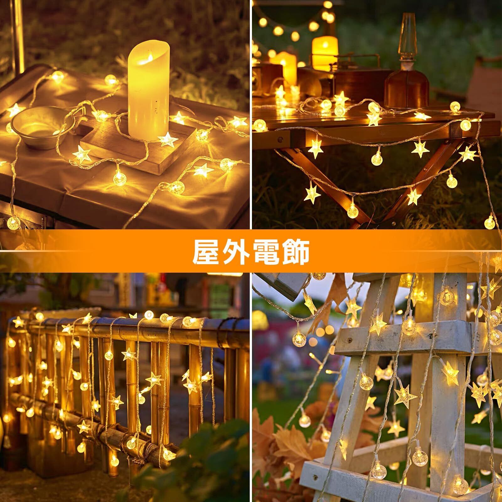 【星とボールの新たな組合せが登場】今までにあるの電池式 イルミネーションライトは殆ど単純に星やボールのストリングライトですが、両方を組合わせると案外の美しさが出ましたので、このアップグレードしたフェアリーライトが登場!ウォームな発色と十分な明るさが備えるこのガーランドライトは、家に飾り付けると暖かく柔らかい輝きで、ロマンチックな雰囲気作るに最適です。