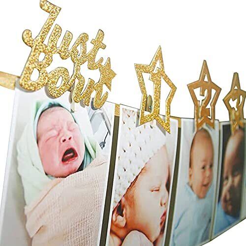 ✨1歳のお誕生日の飾り付けに✨ 生まれた時から1ヶ月ごとの写真を12枚飾れます。お子様の大切な1歳のお誕生日に世界に一つだけのバナーを作ってあげてください!!作り方は簡単!星に木製クリップを付けてお子様の1ヶ月ごとの写真と付属のヒモを挟むだけです。壁に貼ることも、天井や窓に吊るすこともできます。