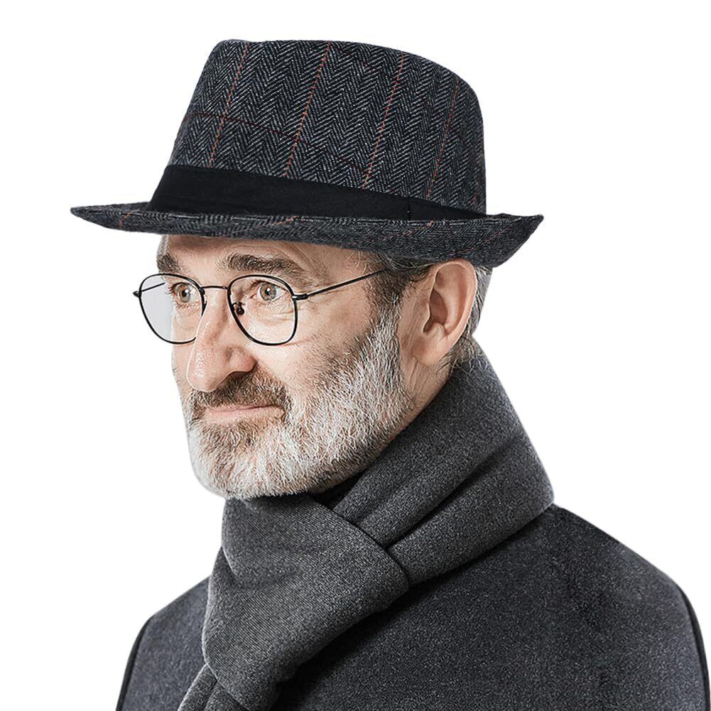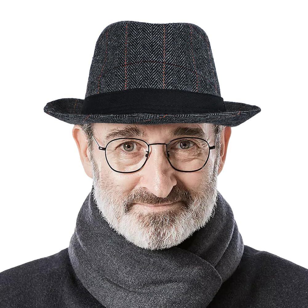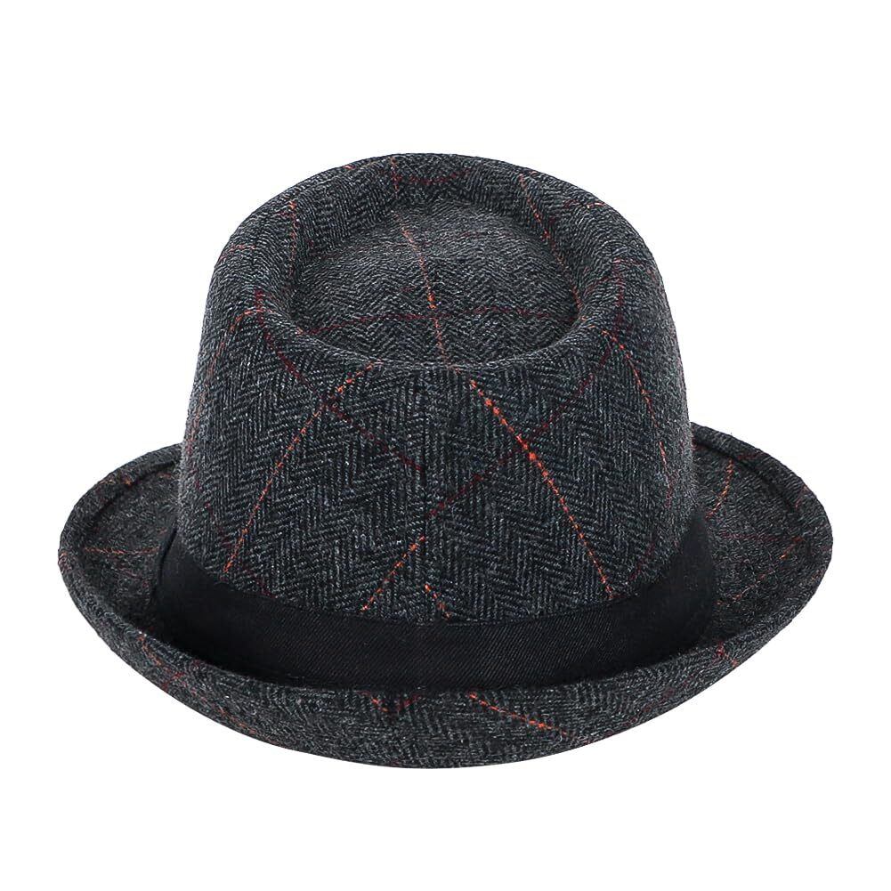 メンズハットはシンプルな中折れデザインされたビンテージグリッド柄アイルランド風で、つばサイドが軽く跳ね上がったシルエットがとてもきれい、初心者にも被りやすいタイプです。