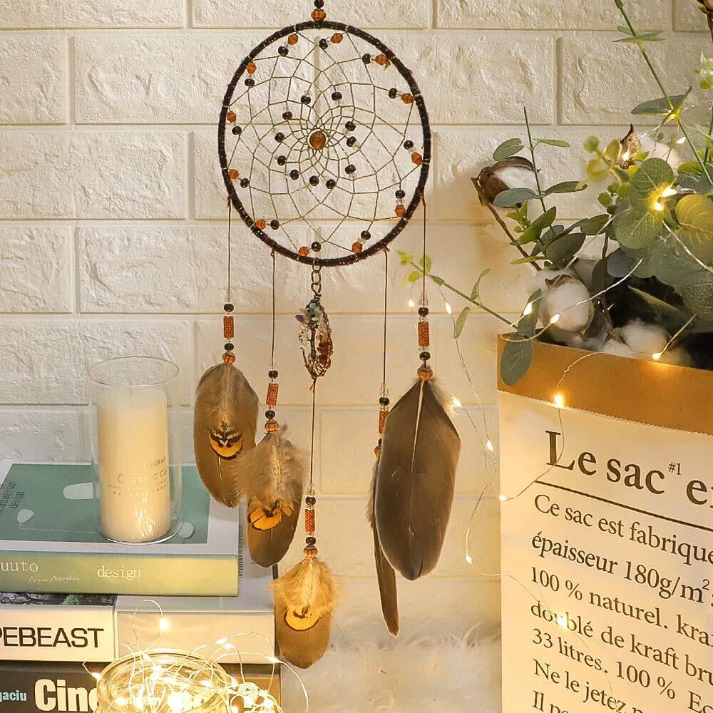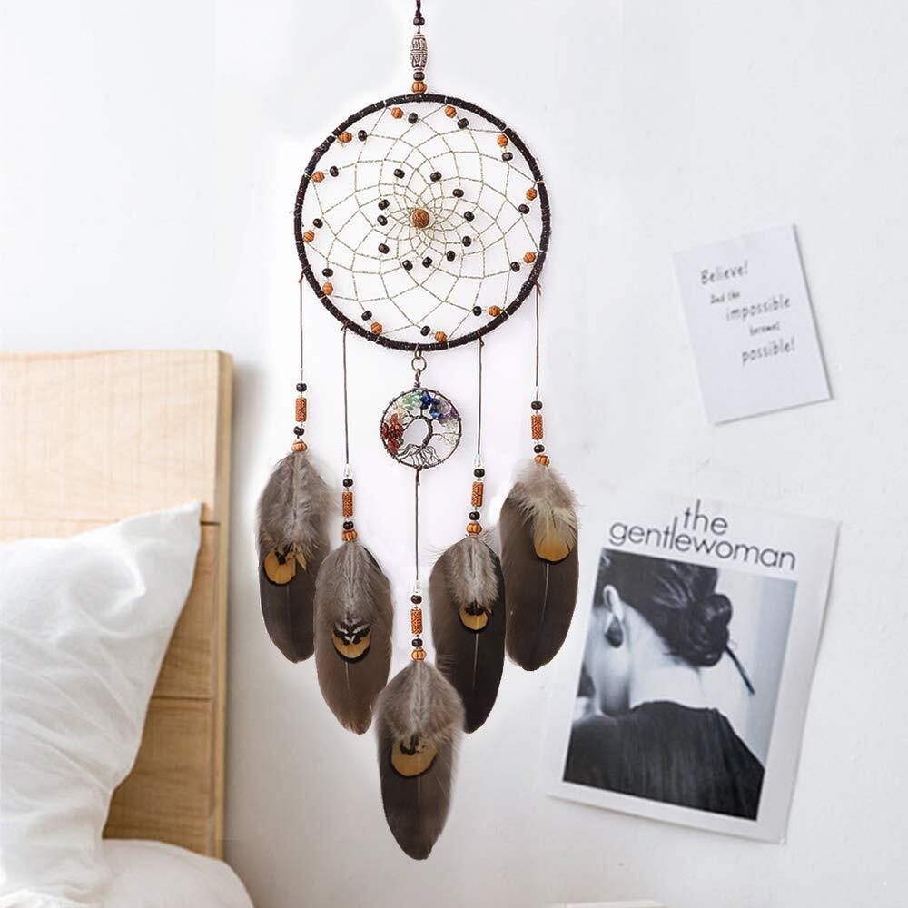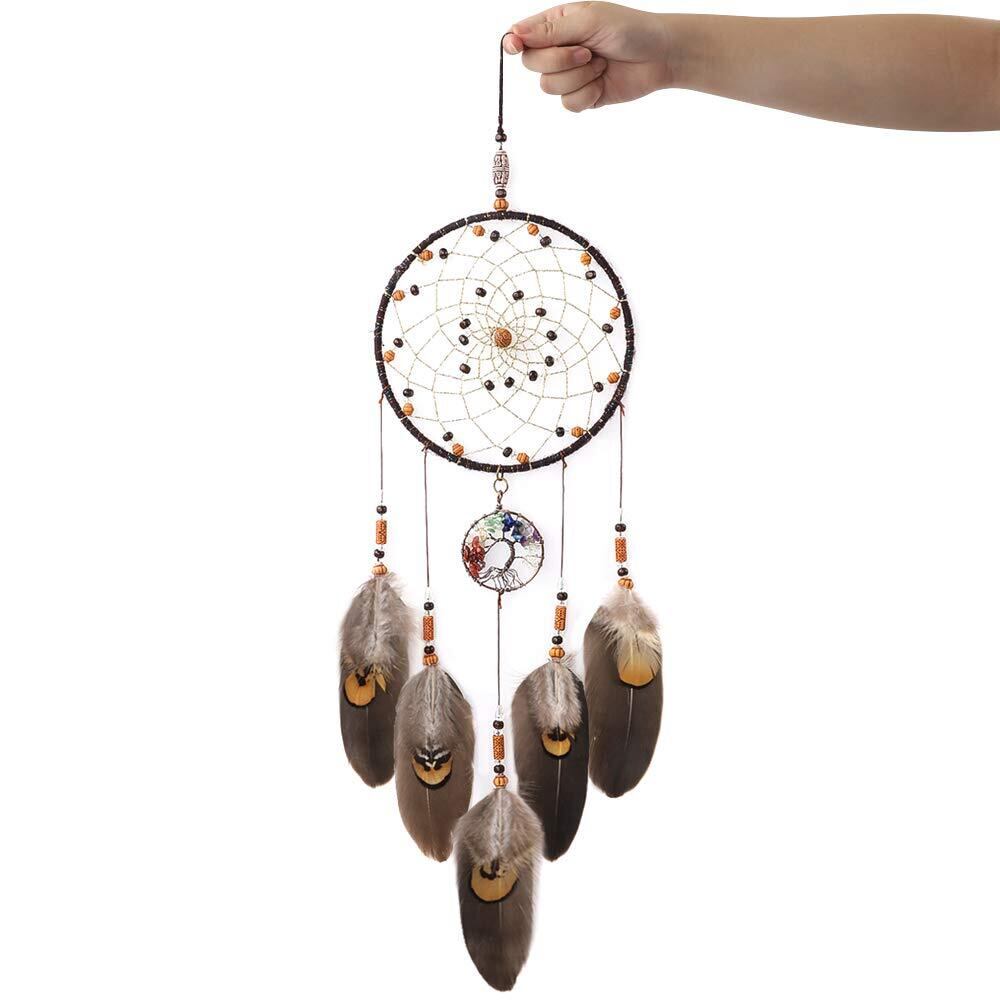 OUTUXED ドリームキャッチャー 生命の木 ブラウン ハンドメイド フェザー ネイティブアメリカン ドリームキャッチャー 寝室 壁掛け ホーム装飾 ウェディングパーティー 祝福ギフト 直径6インチ