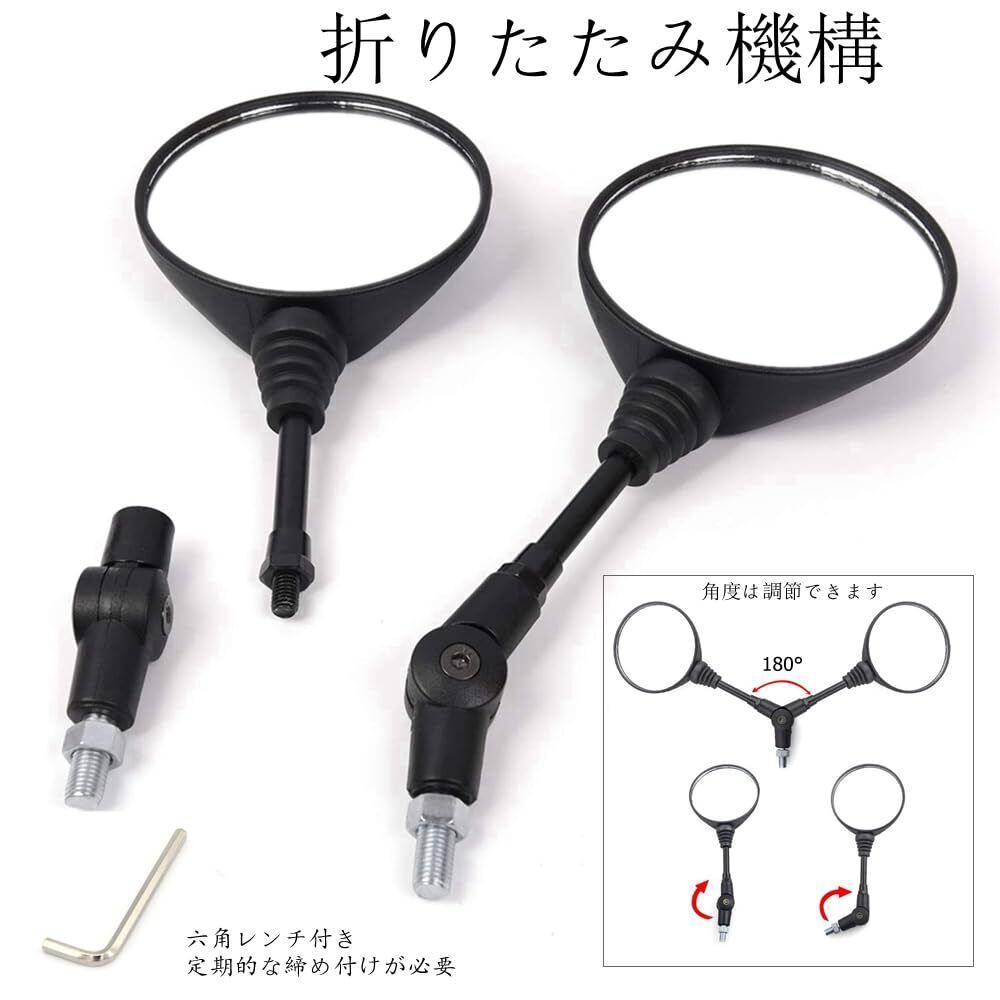 DGYACHOR バイク ミラー オフロードミラー 可倒式ミラー 折りたたみ 10mm正ネジ 左右セット ネジアダプター付き