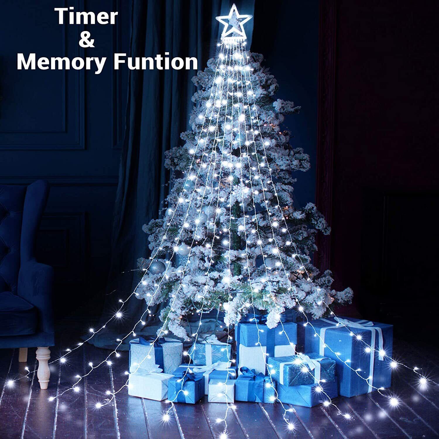 IFEND クリスマス イルミネーション 屋外 ソーラー ライト led 防水 9本 350球 ドレープライト 店舗 家庭 星モチーフ リモコン付 タイマー機能 飾り 星モチーフ ツリー 自動点灯 消灯 パーティー 新年 祝日 結婚式 庭対応 (コールド)