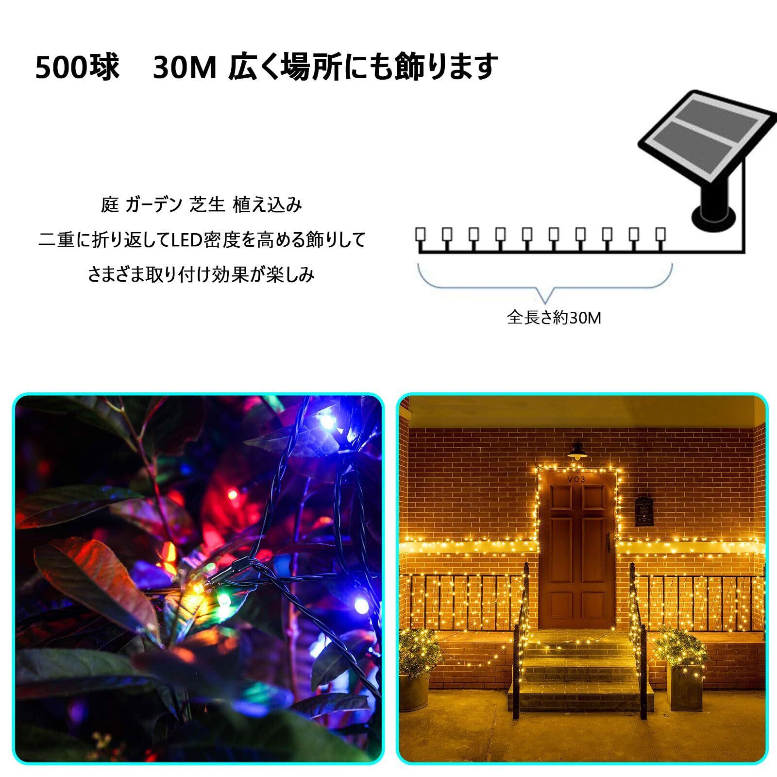 【2色切替タイプ】ソーラー式LEDイルミネーションライト クリスマス ツリ 300球 24m 防水 ストリングライト 複数連結可 TYPEC充電可 11パターン点灯 屋外 庭 ガーデン 植込みなど飾りライト