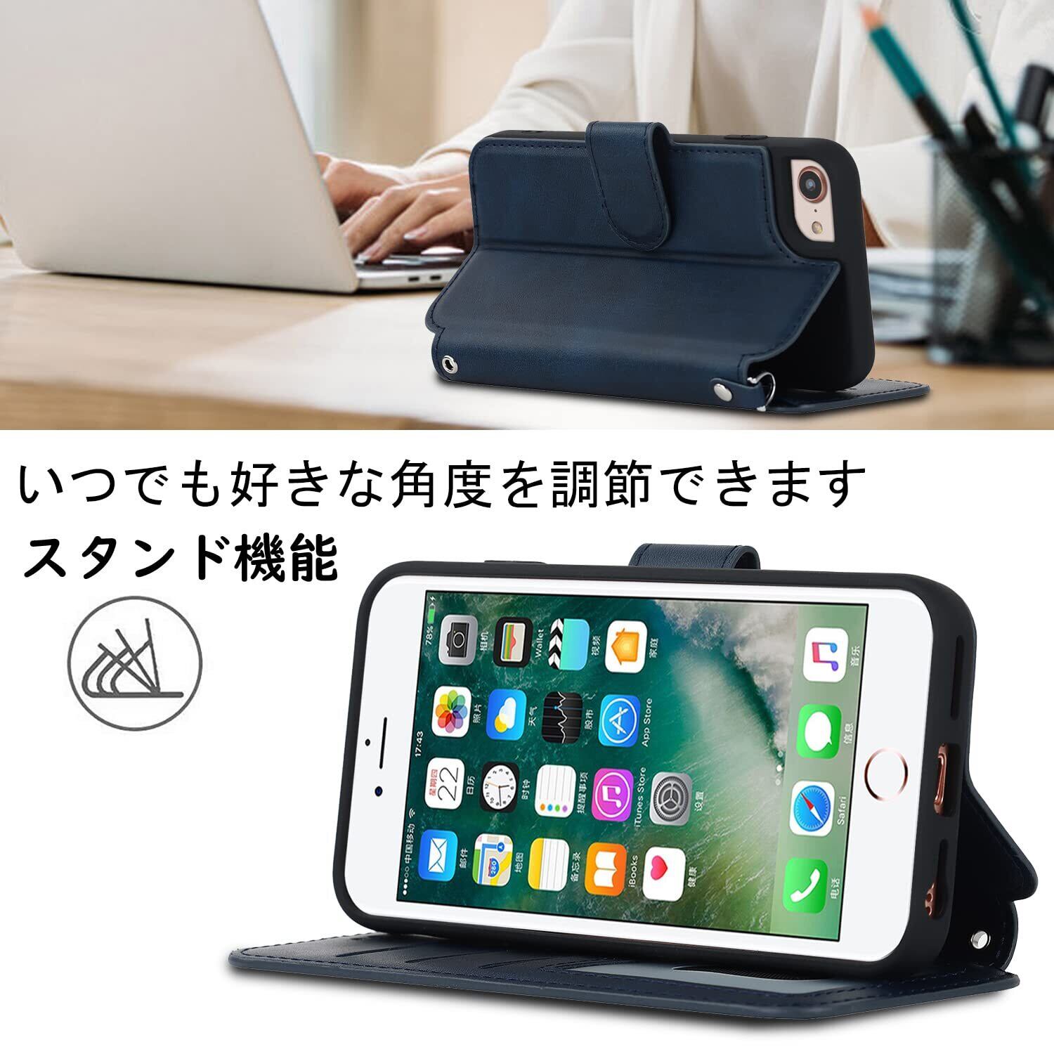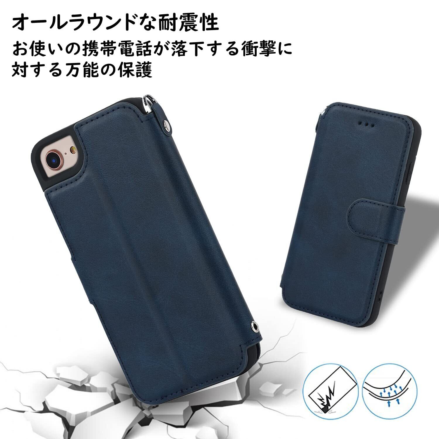 Havaya iPhone SE3 ケース iphone8 ケース 手帳型 アイホンseケース 第3世代 第2世代 米軍MIL規格 軽薄 ストラップ 耐衝撃 レンズ保護(アイフォンSE3 /あいふぉんSE2/いphone8/アイホン7/アイフォン6/6s 4.7インチ対応)-ブルー