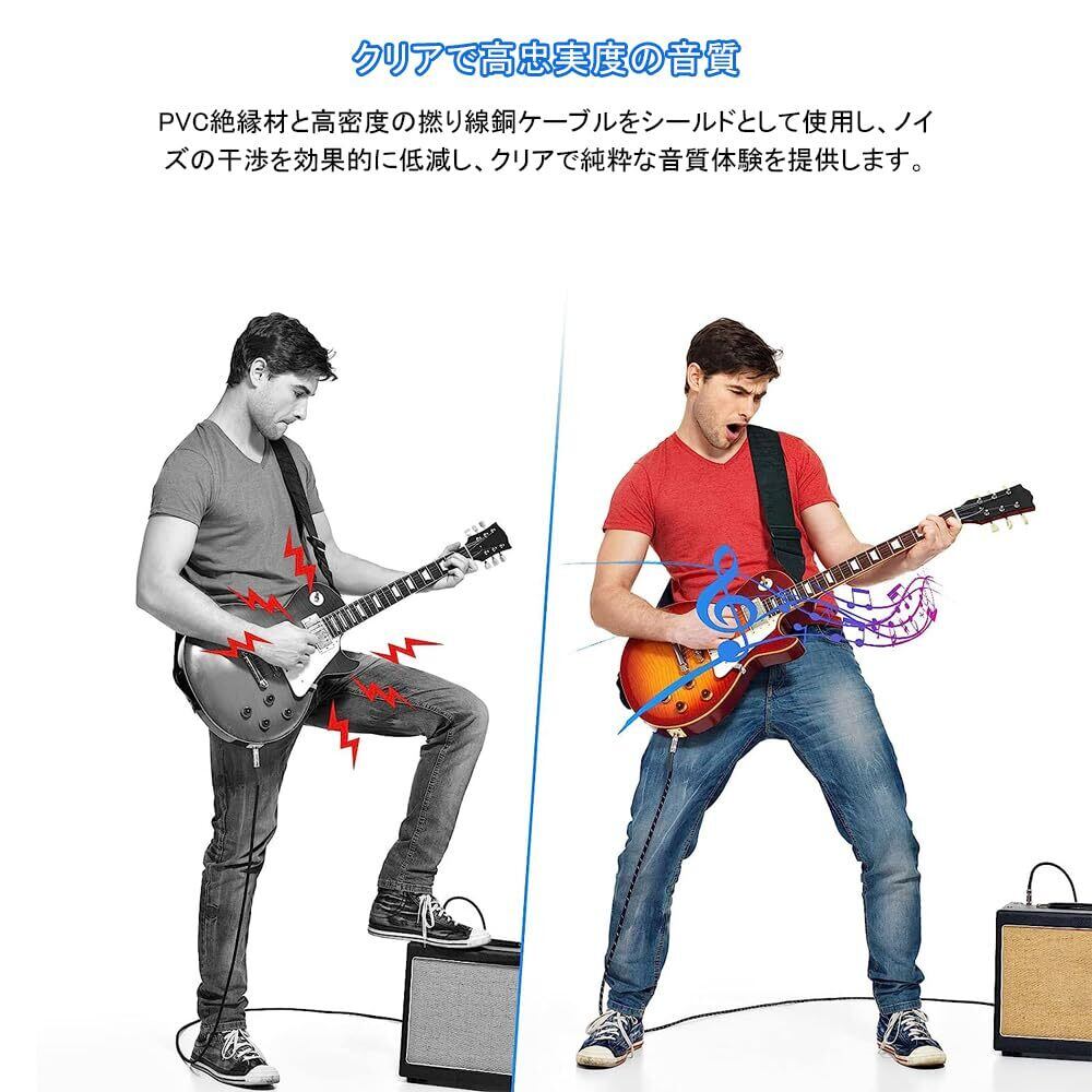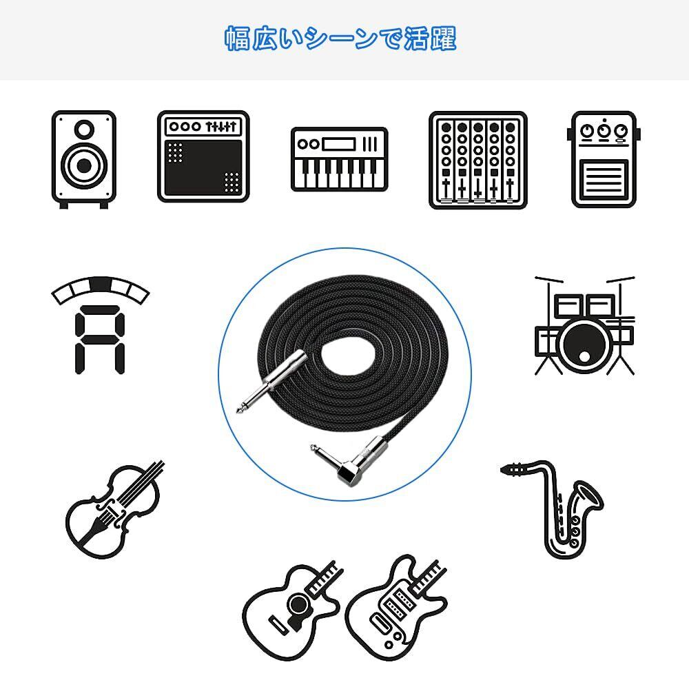 【多機能の互換性】私たちのギターケーブルは、ストレート型とL型プラグのデザインを採用しており、さまざまな機器と広範に互換性があります。ミキサー、パワーアンプ、マイク、エレキギターなどのオーディオ機器に簡単に接続できます。音楽制作やライブパフォーマンスなど、あらゆるシーンで信頼性のある接続を提供します。