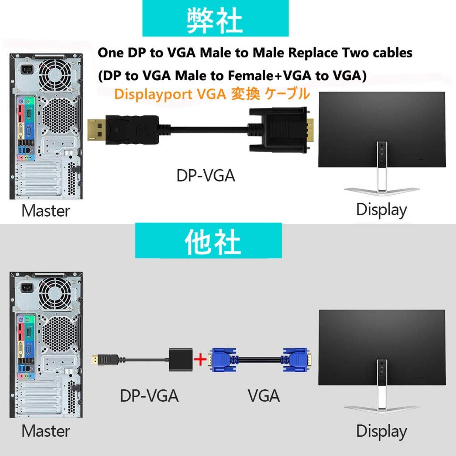 Displayport VGA 変換 ケーブル 1.8m ディスプレイポート D-sub 15ピン DP to VGA オス オス 1080P デュアルディスプレイ DP (オス) - VGA(オス) 【逆変換不可】