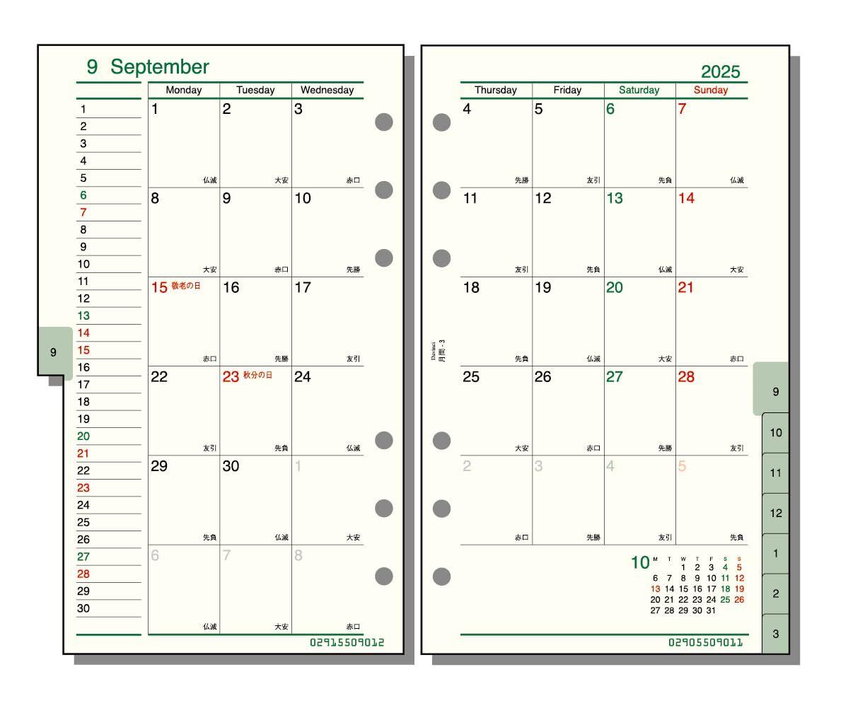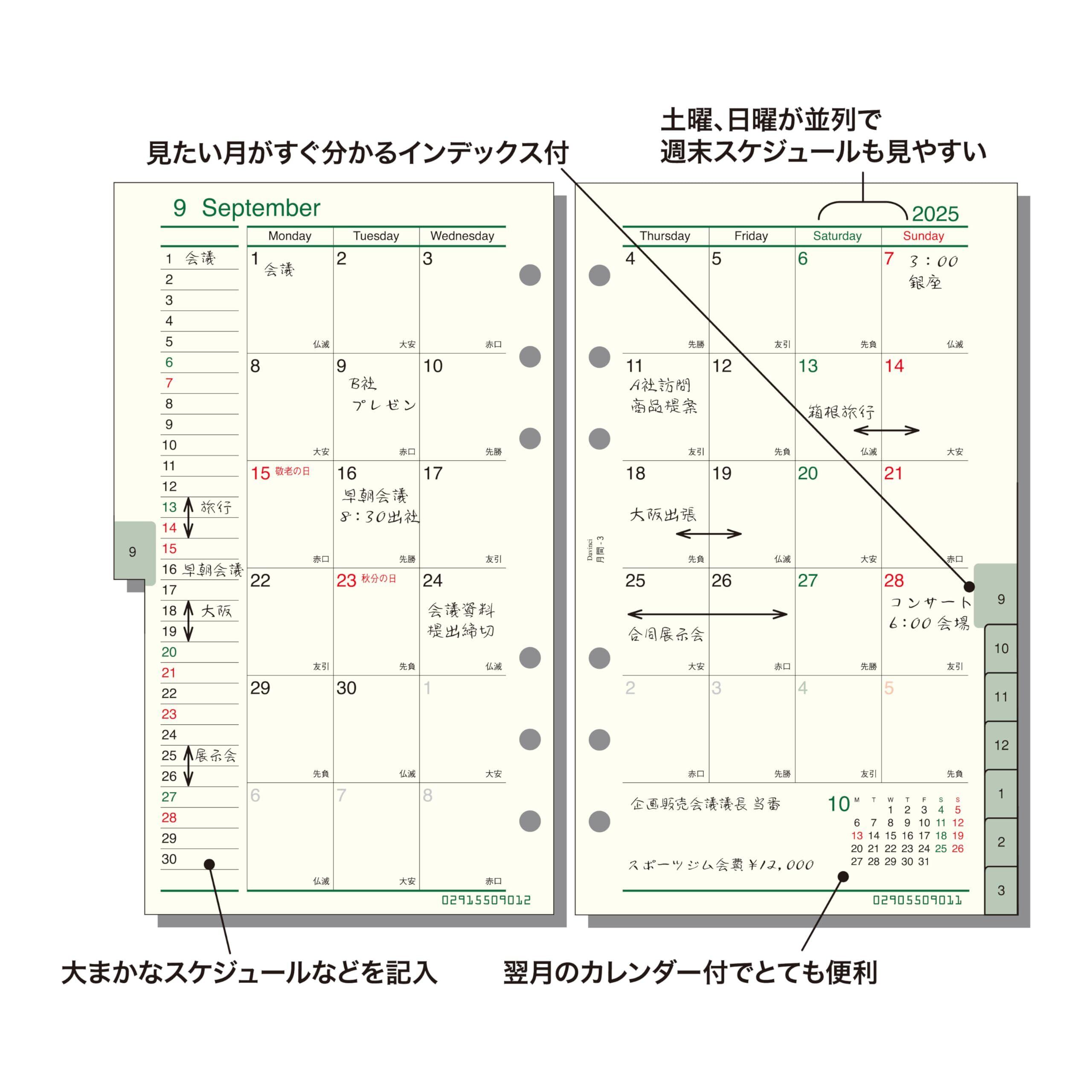 商品名:レイメイ藤井 手帳 システム手帳 リフィル 2025年 バイブルサイズ ダヴィンチ 月間3 マンスリー DR2520 2025年 4月始まり対応