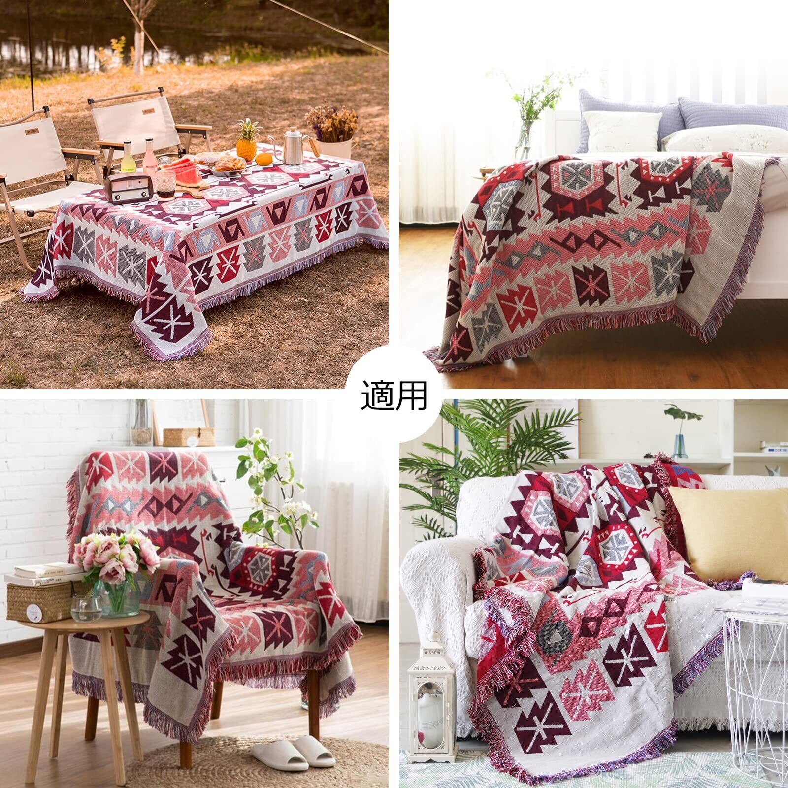 多機能:このマルチカバーは、様々なシーンで活用できます。ソファーカバー、テーブルクロス、毛布、ベッドカバー、チェアカバー、ラグ、レジャーシート、ひざ掛け、キャンプブランケット、ピクニックマットなど、一年中幅広い用途に活躍します。