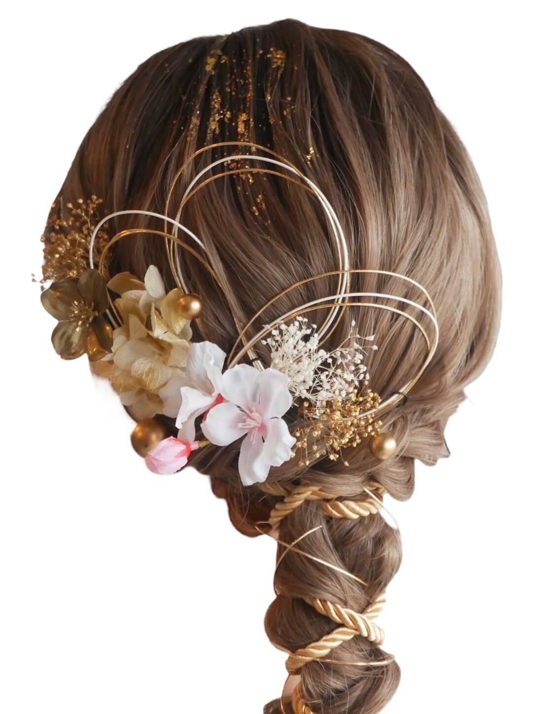 プリザーブドフラワー(ドライフラワー)でお作りしております髪飾りのセットです。人気の組紐リボンにドライフラワーを合わせました。