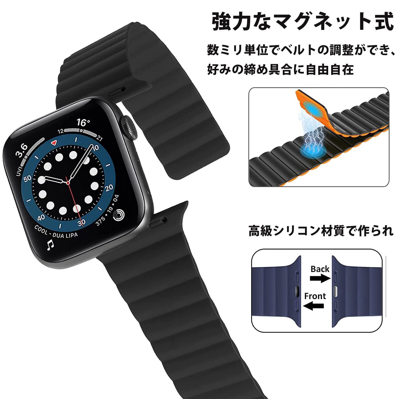 Apple Watch バンド シリコン アップルウォッチ バンド 磁吸引式ループ 自由調整 スポーツ 耐衝撃 防汗 肌にやさしい あっぷるうぉっち マグネット交換バベルト38mm 40mm 41mm 42mm iWatch Series 7 6 SE 5 4 3 2 1 に対応 (38mm/40mm/41mm, ブラック/イエロー)